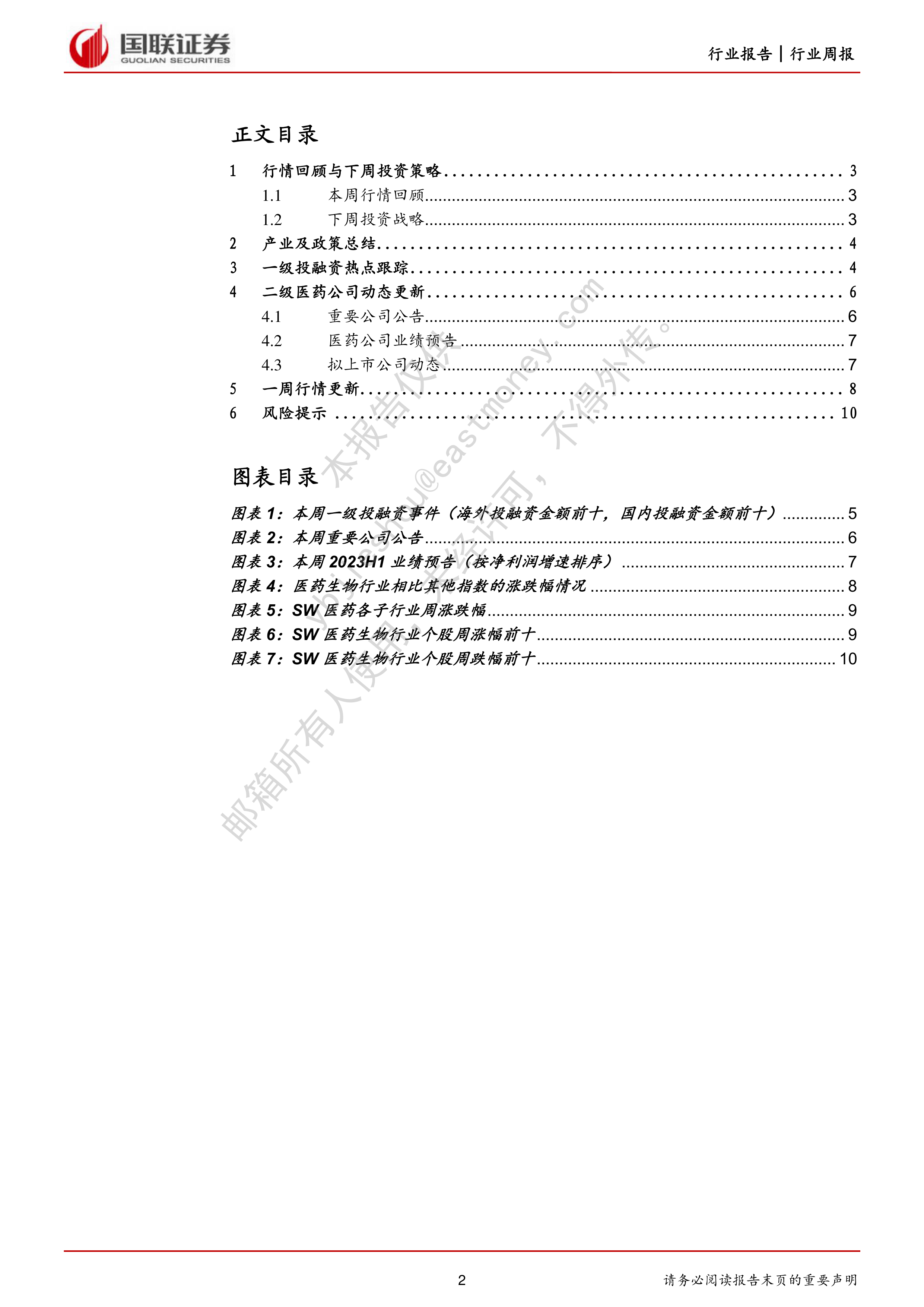 图表2总结了本周医药公司重要公告,包括公司名称、公告日期、公告类型和公告内容。公告内容涵盖研发进展、股权投资、重大人事变动等方面。