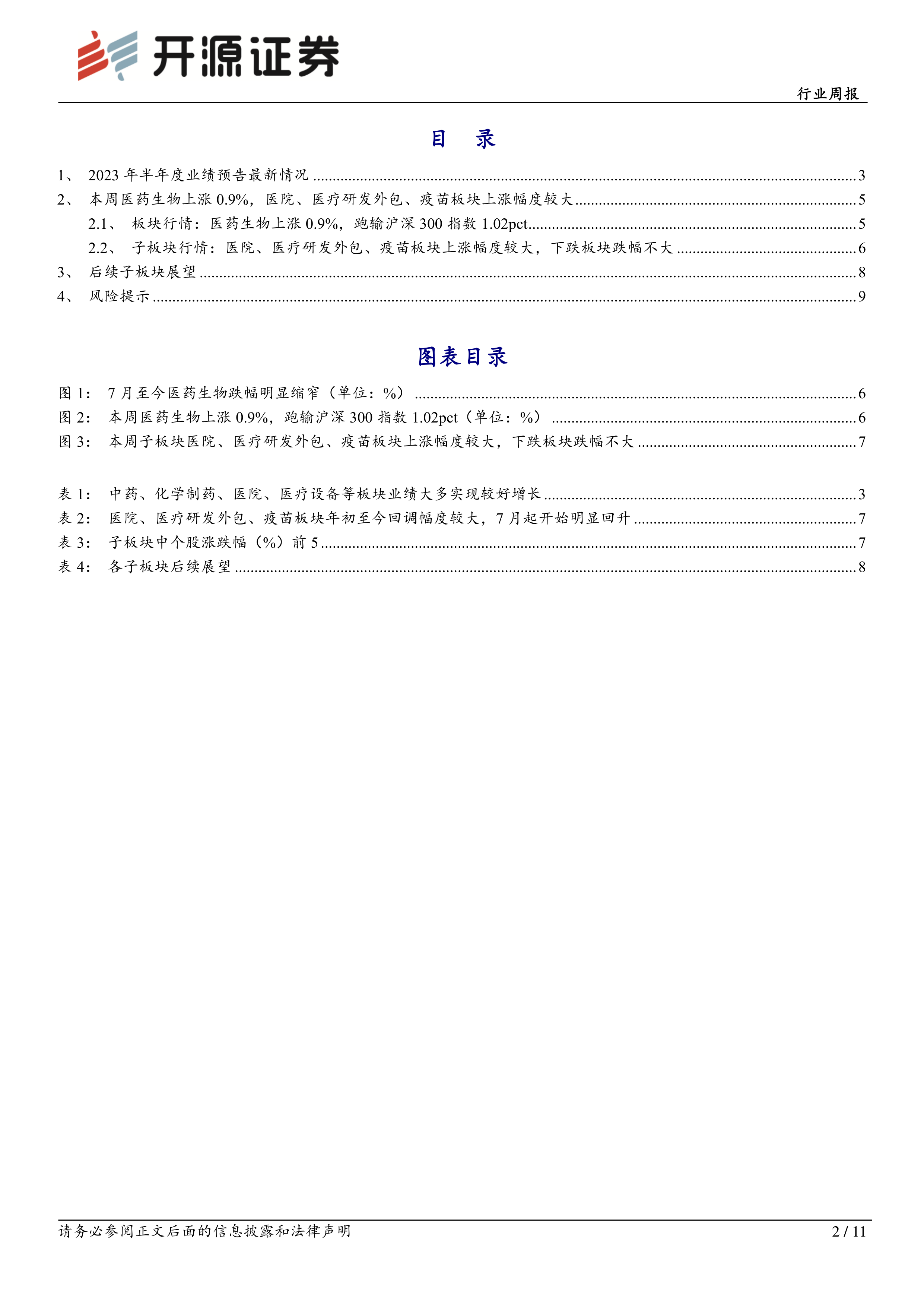 医药生物行业周报:2023半年度业绩预告频出,中药、化学制剂、医院、医疗设备等业绩增长快