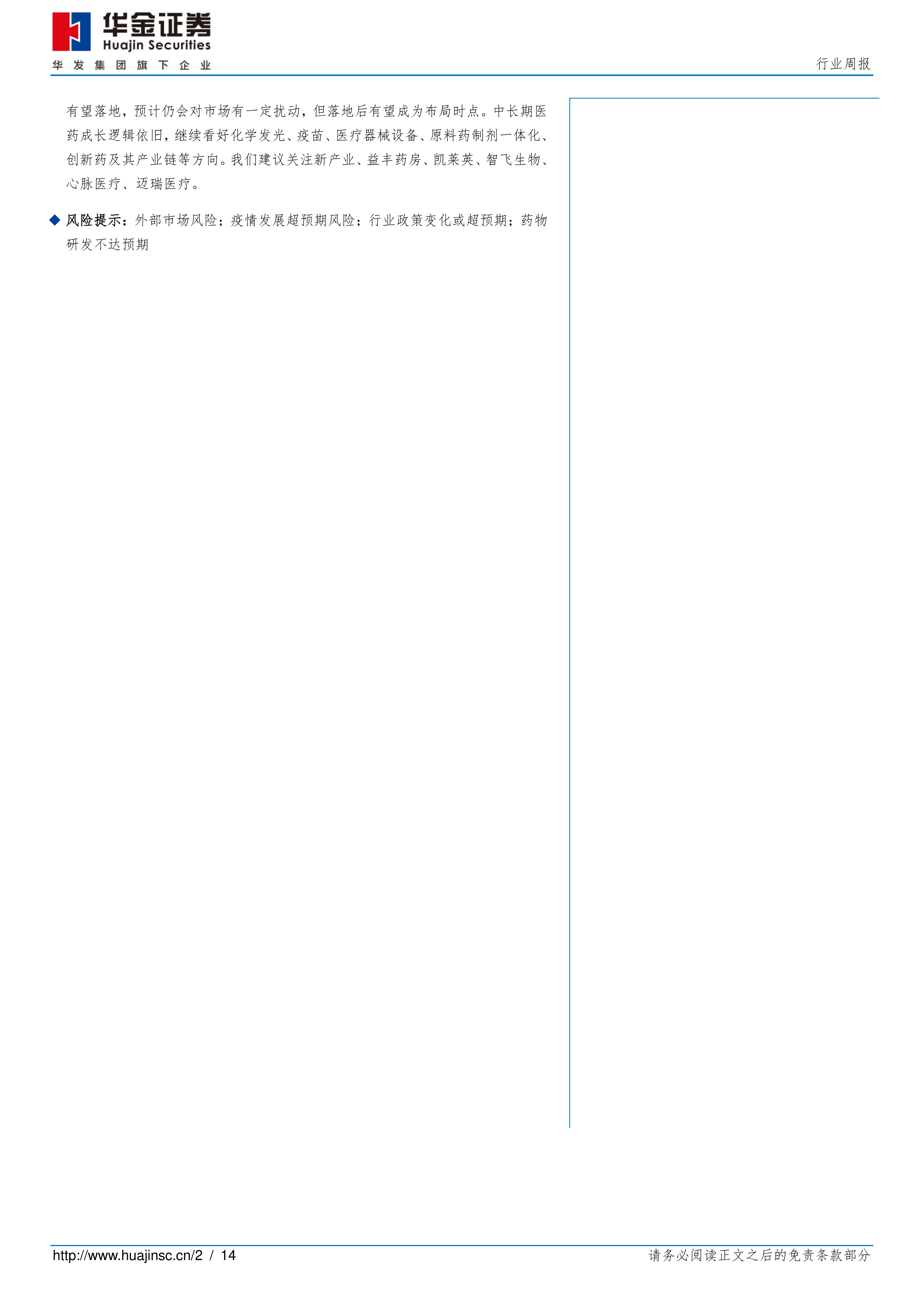 风险提示:外部市场风险;疫情发展超预期风险;行业政策变化或超预期;药物研发不达预期