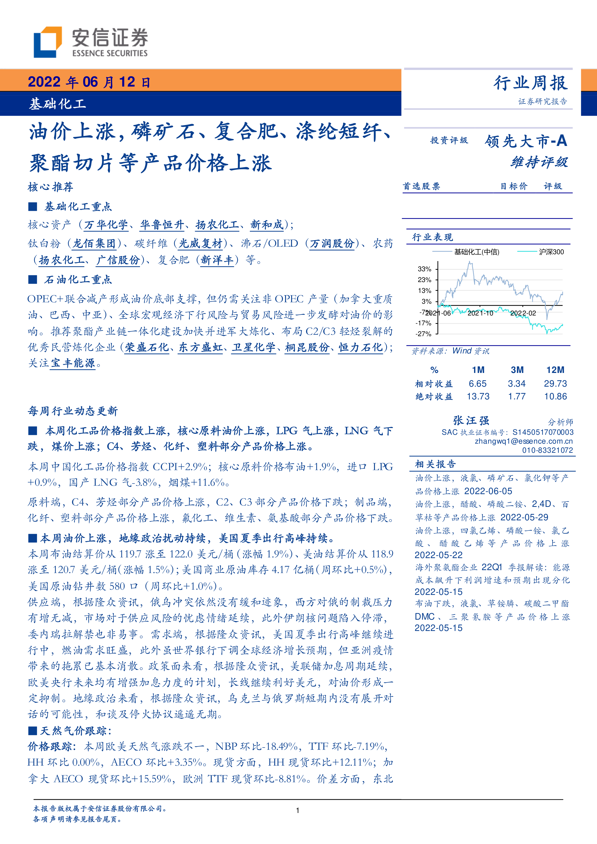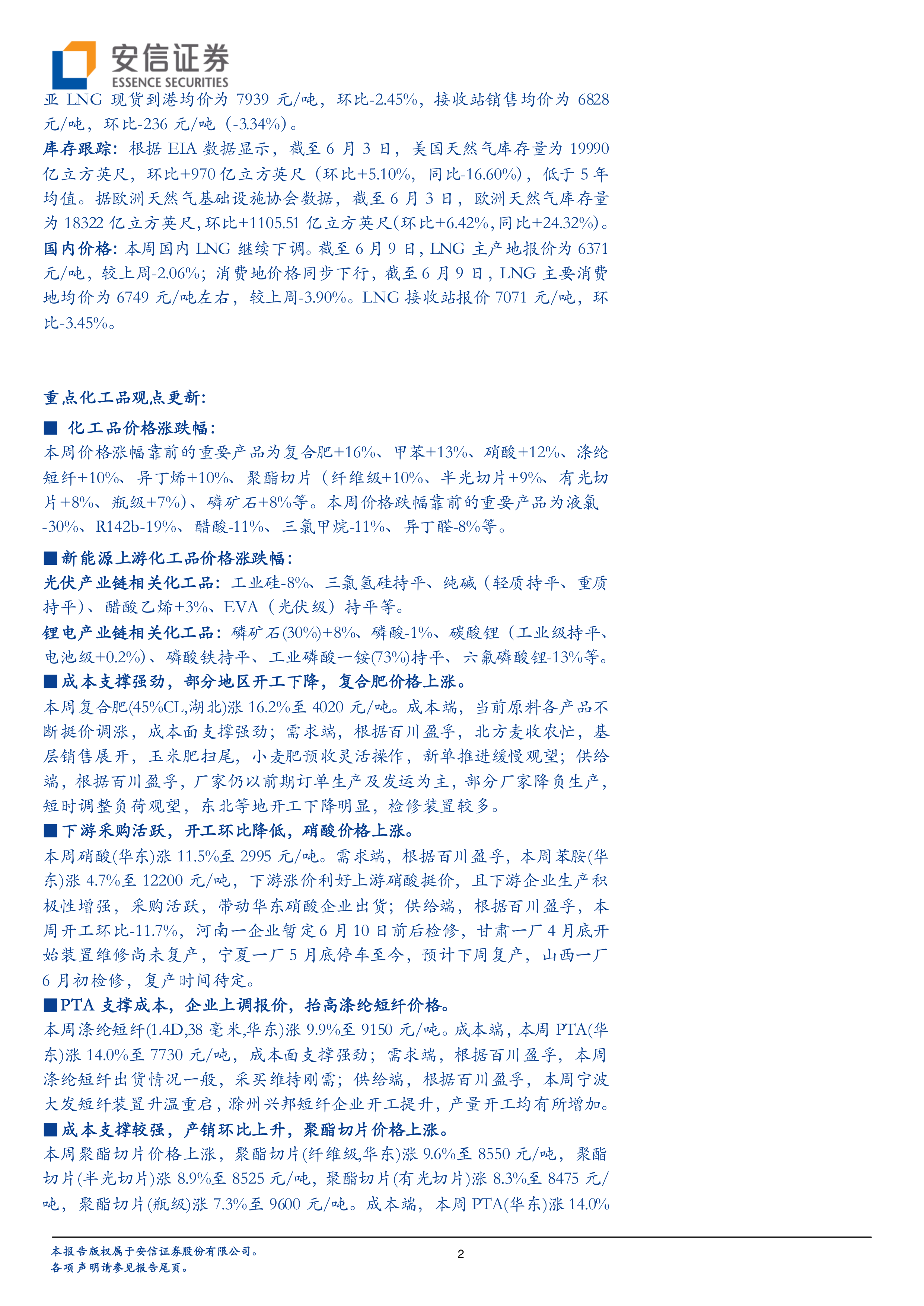 本报告基于安信证券对基础化工行业的周度跟踪,对本周化工品价格指数、核心原料价格、以及重点化工产品价格波动进行了详细分析。油价上涨是本周化工品价格波动的主要驱动因素,导致部分化工产品价格上涨,而另一些产品价格则下跌。报告深入分析了价格波动的具体原因,并对未来市场走势进行了展望,为投资者提供了重要的参考信息。 然而,投资者仍需关注全球宏观经济下行风险、地缘政治风险以及原料价格波动等因素对基础化工行业的影响。 本报告仅供参考,不构成投资建议。