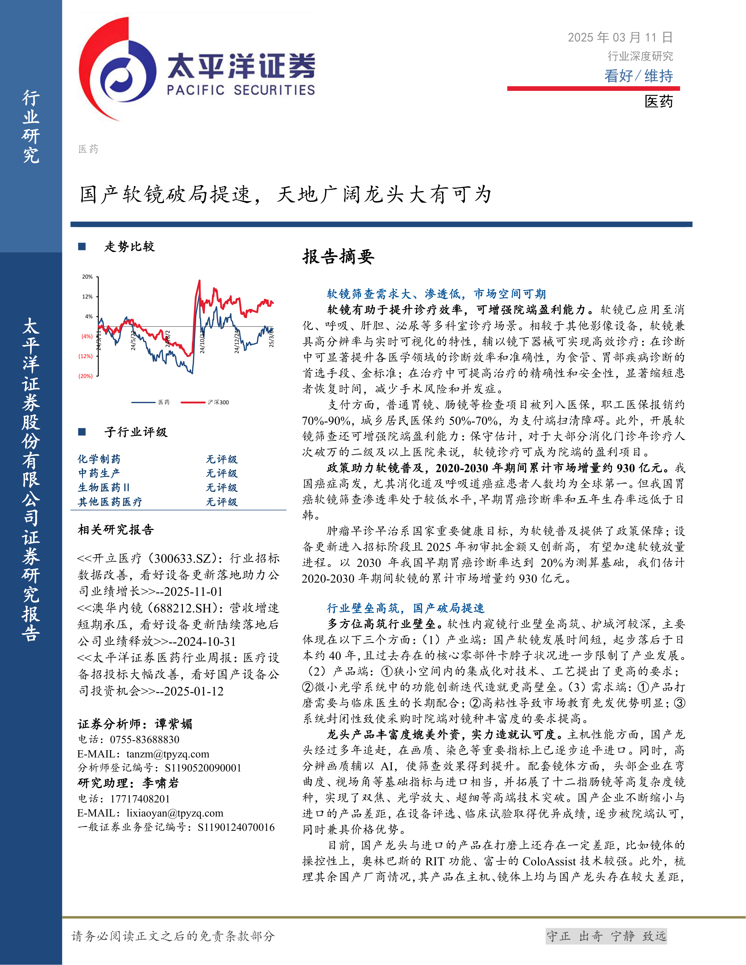 医药行业深度研究:国产软镜破局提速,天地广阔龙头大有可为
