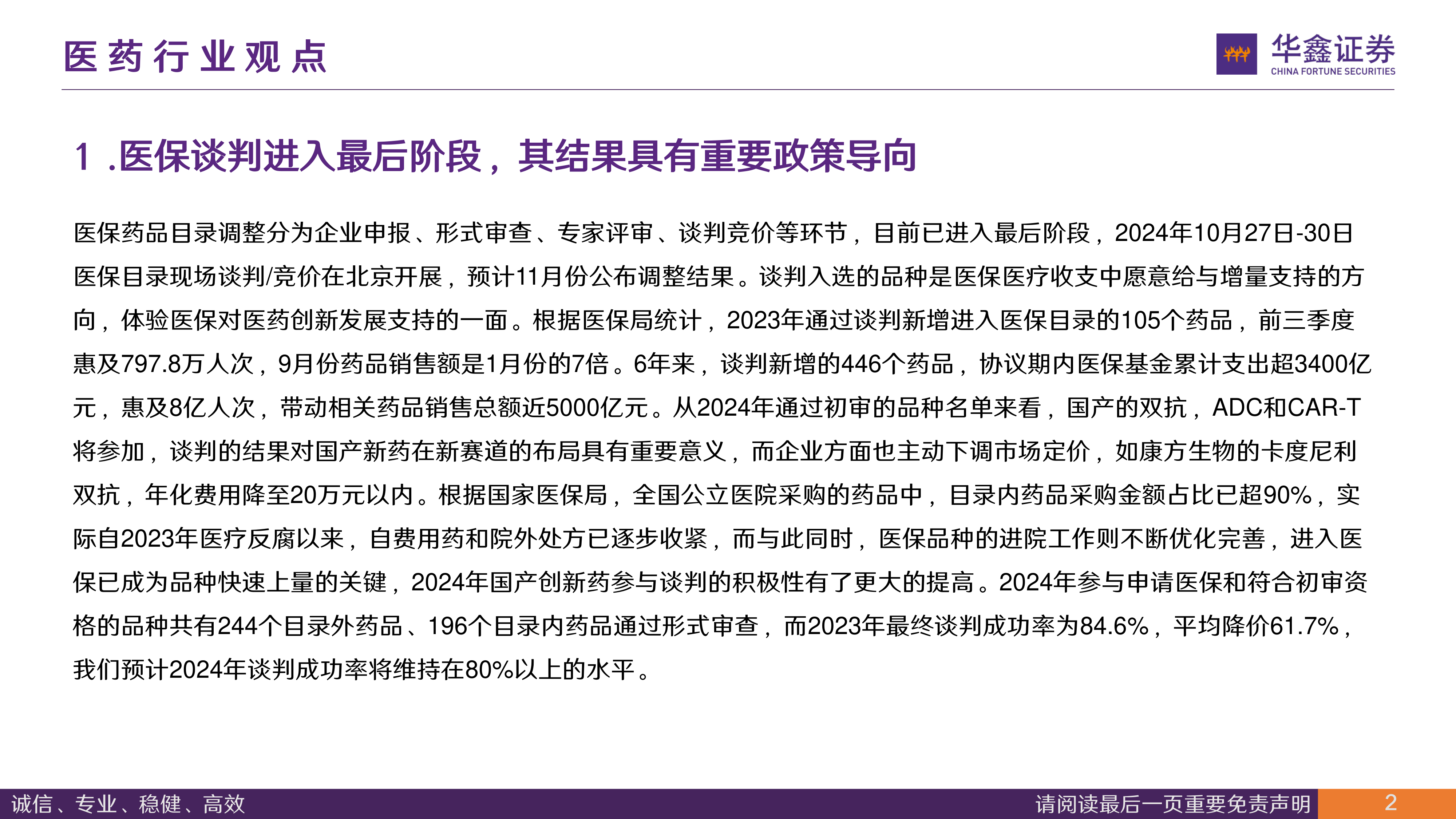 1.医保谈判进入最后阶段,其结果具有重要政策导向