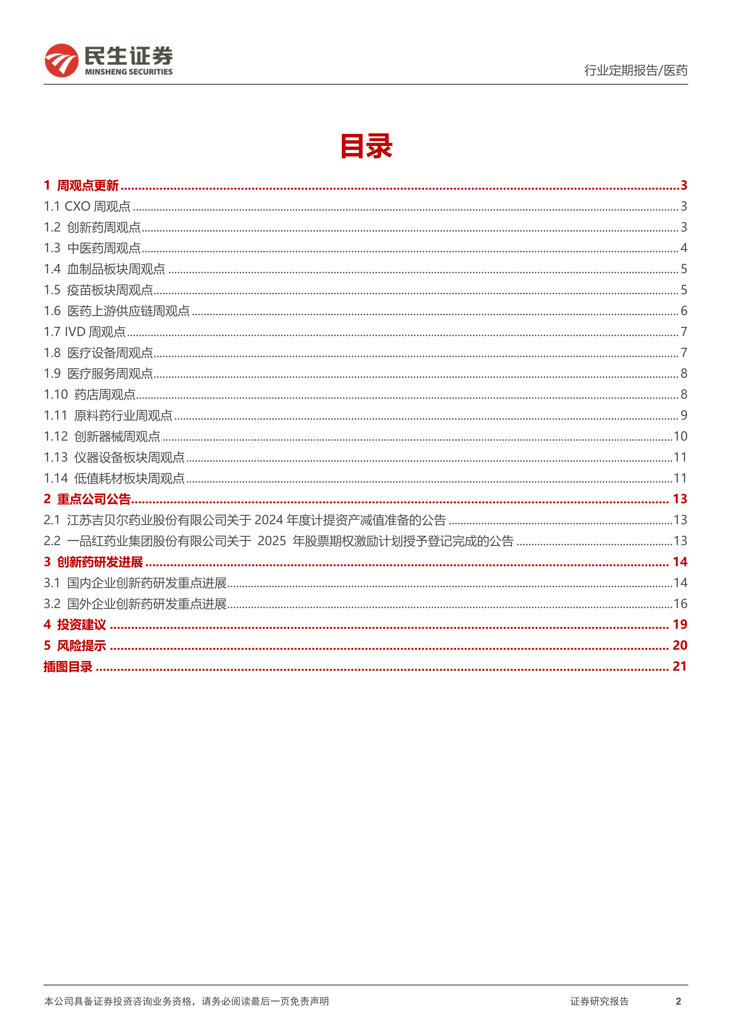 风险提示:集采压力大于预期风险;产品研发进度不及预期风险;竞争加剧风险;政策监管环境变化风险;药物研发服务市场需求下降的风险。