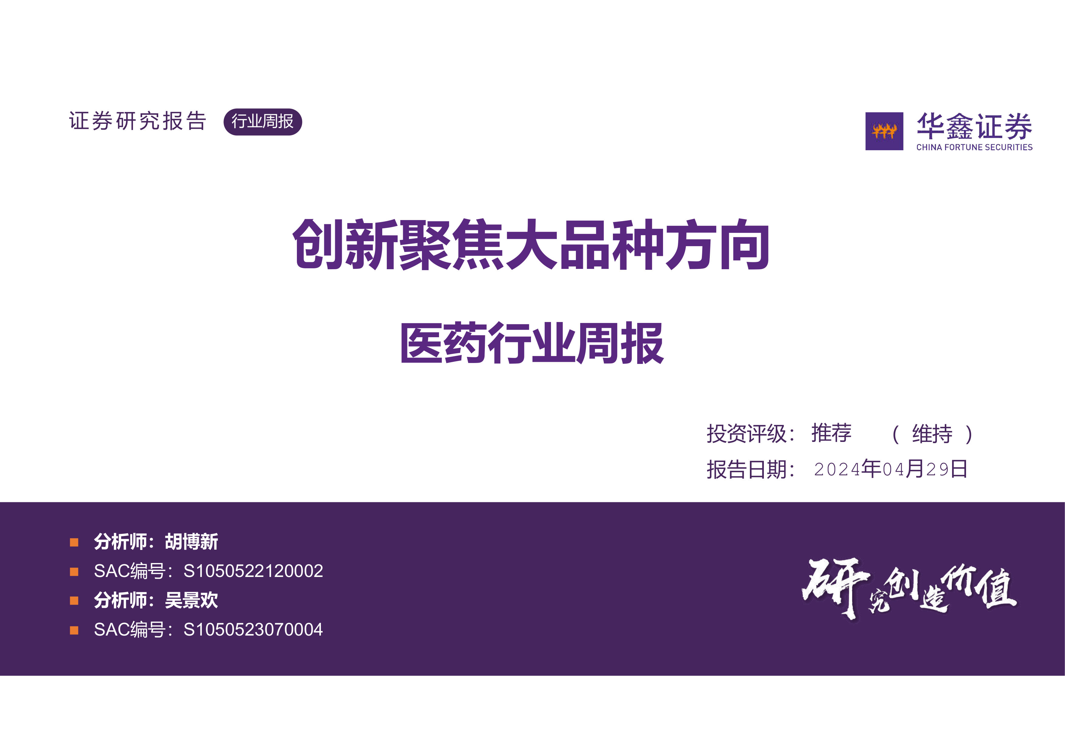 报告列出了华鑫医药团队近期发布的研究报告及点评报告。