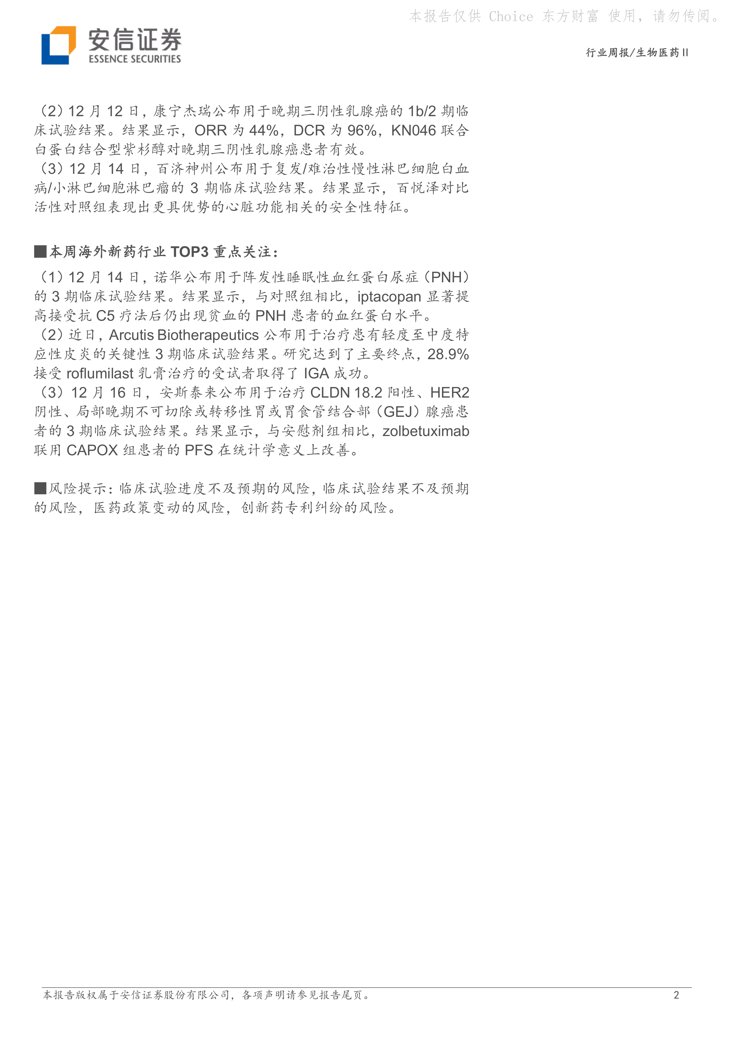 风险提示:临床试验进度不及预期的风险,临床试验结果不及预期的风险,医药政策变动的风险,创新药专利纠纷的风险。