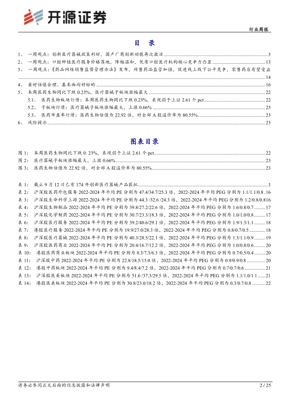 报告对医药外包服务、生命科学上游、生物制品、化学制药、医疗服务(沪深及港股)、医疗器械、医药商业(沪深及港股)、中药(沪深及港股)、医美(沪深及港股)等多个细分板块的估值进行了分析,并提供了相应的PE和PEG数据,为投资者提供参考。