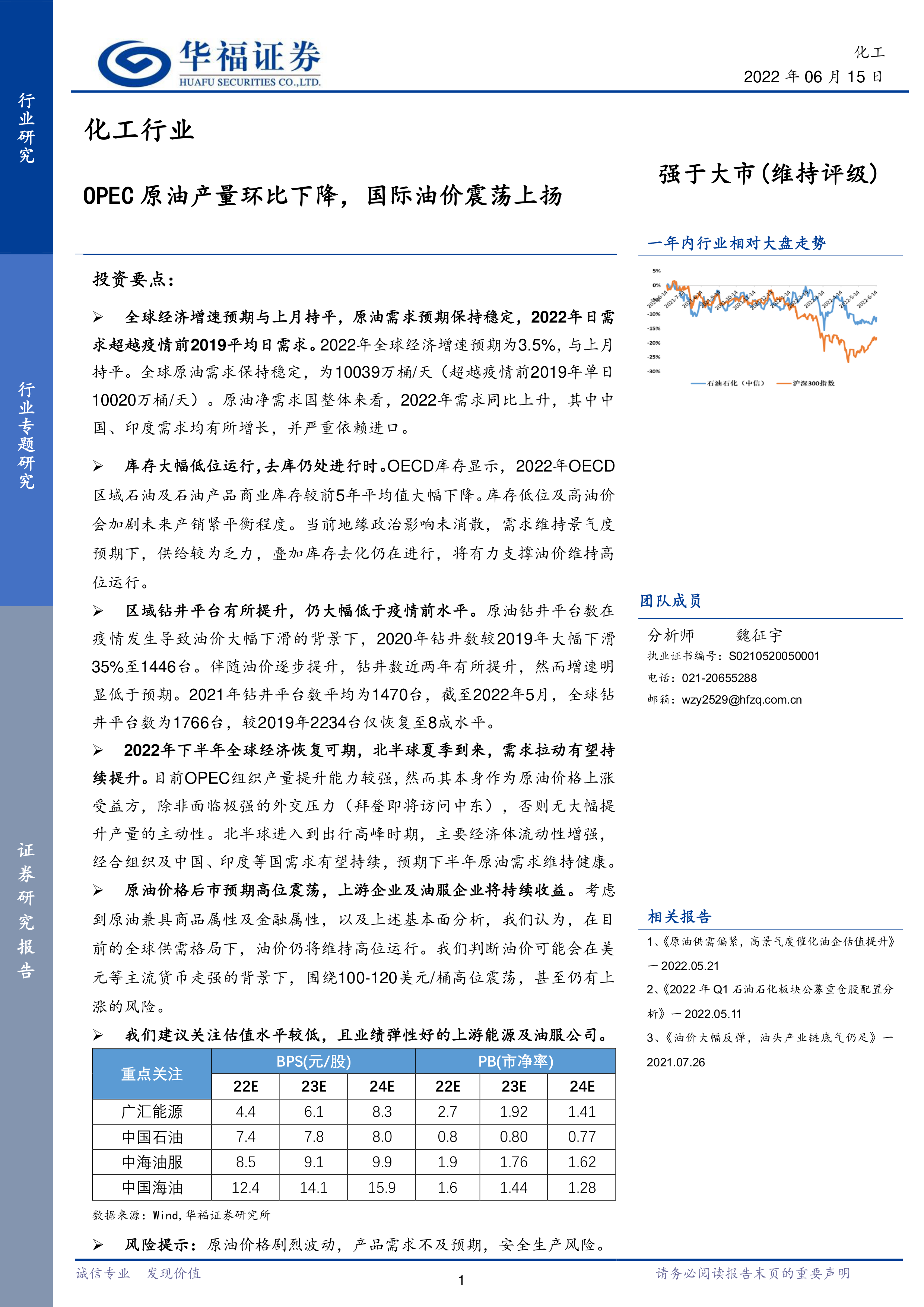 化工行业:OPEC原油产量环比下降,国际油价震荡上扬