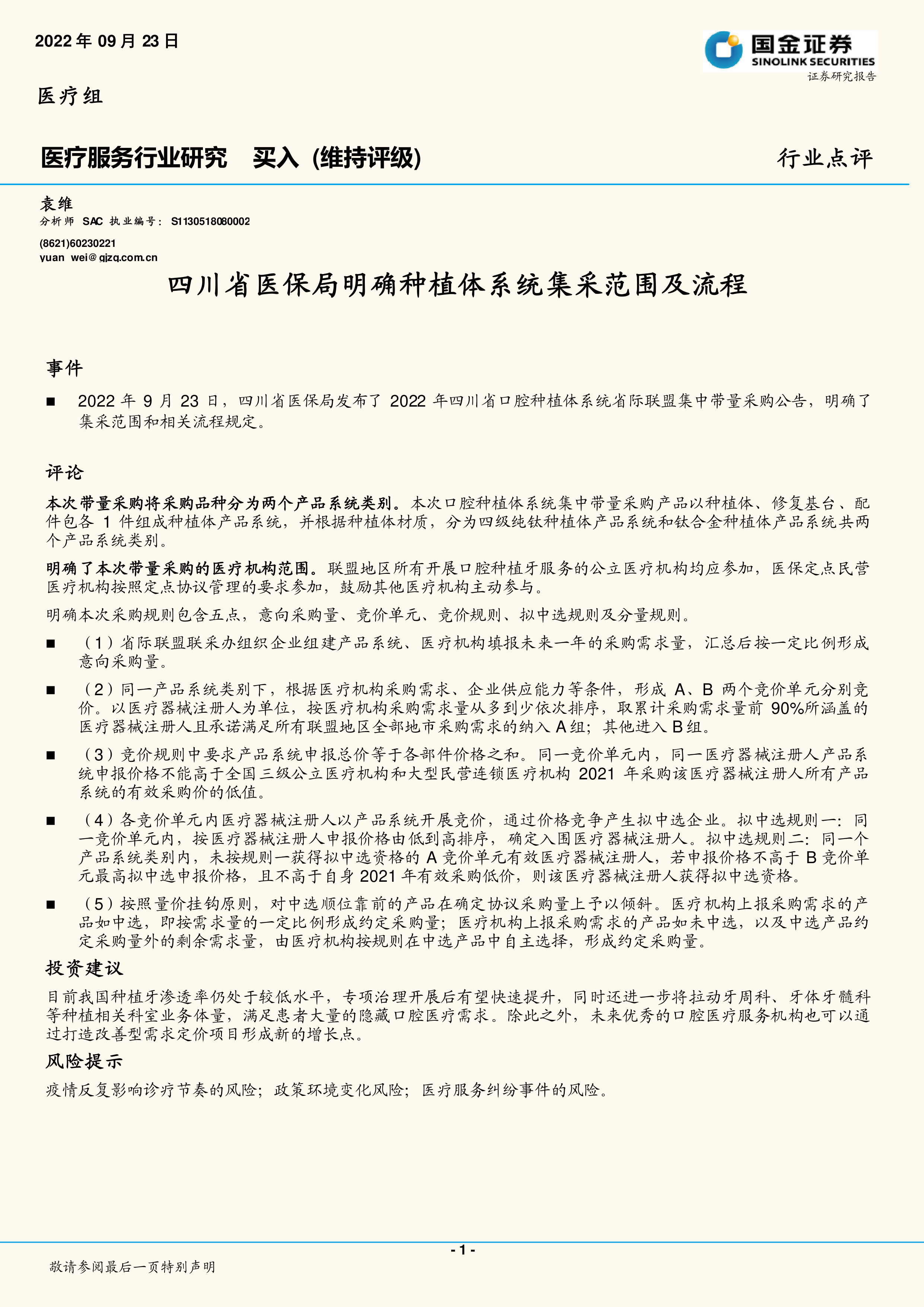 医疗服务行业研究:四川省医保局明确种植体系统集采范围及流程