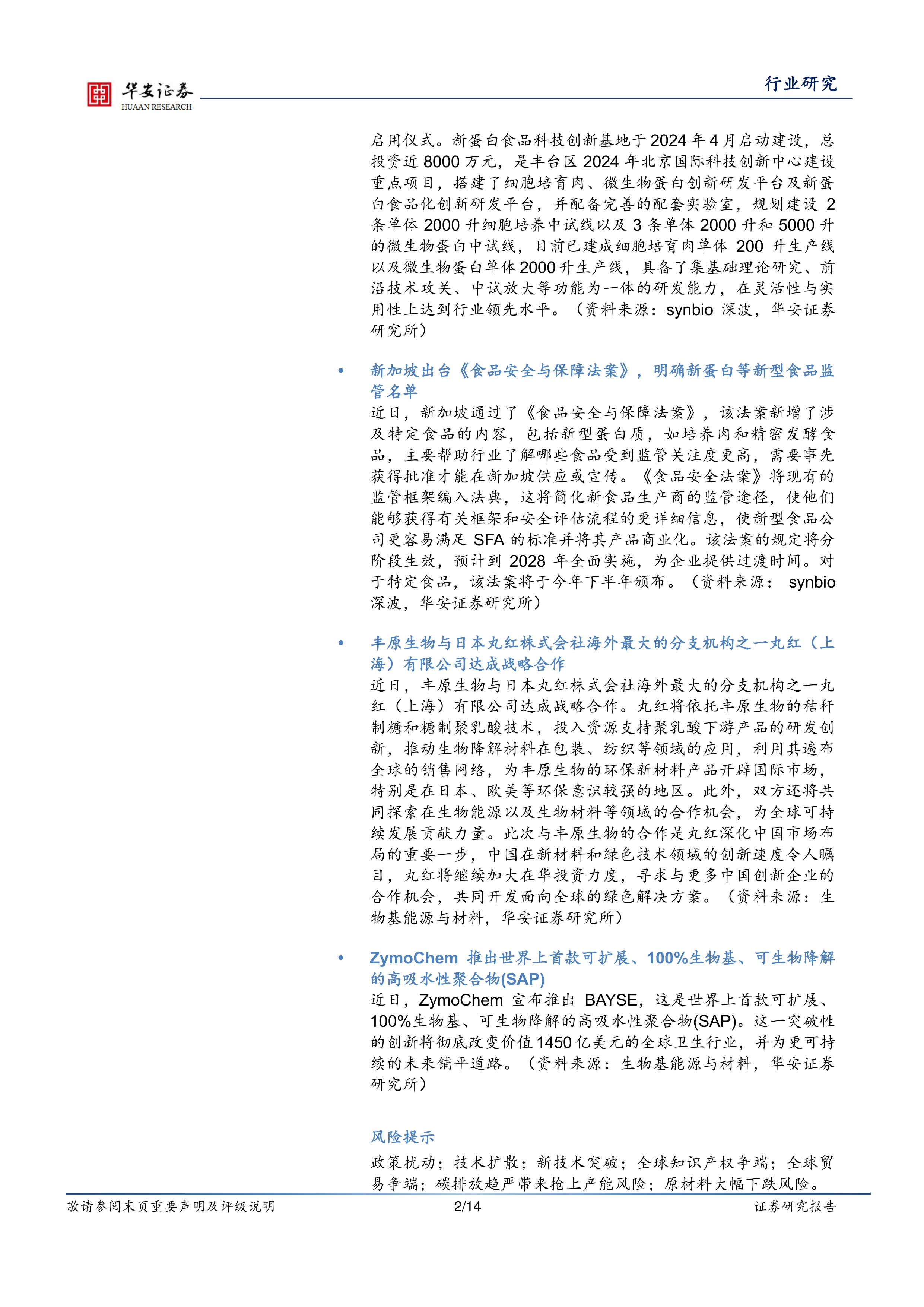 近日,丰原生物与日本丸红株式会社海外最大的分支机构之一丸红(上海)有限公司达成战略合作。丸红将依托丰原生物的秸秆制糖和糖制聚乳酸技术,投入资源支持聚乳酸下游产品的研发创新,推动生物降解材料在包装、纺织等领域的应用,利用其遍布全球的销售网络,为丰原生物的环保新材料产品开辟国际市场,特别是在日本、欧美等环保意识较强的地区。此外,双方还将共同探索在生物能源以及生物材料等领域的合作机会,为全球可持续发展贡献力量。此次与丰原生物的合作是丸红深化中国市场布局的重要一步,中国在新材料和绿色技术领域的创新速度令人瞩目,丸红将继续加大在华投资力度,寻求与更多中国创新企业的合作机会,共同开发面向全球的绿色解决方案。(资料来源:生物基能源与材料,华安证券研究所)