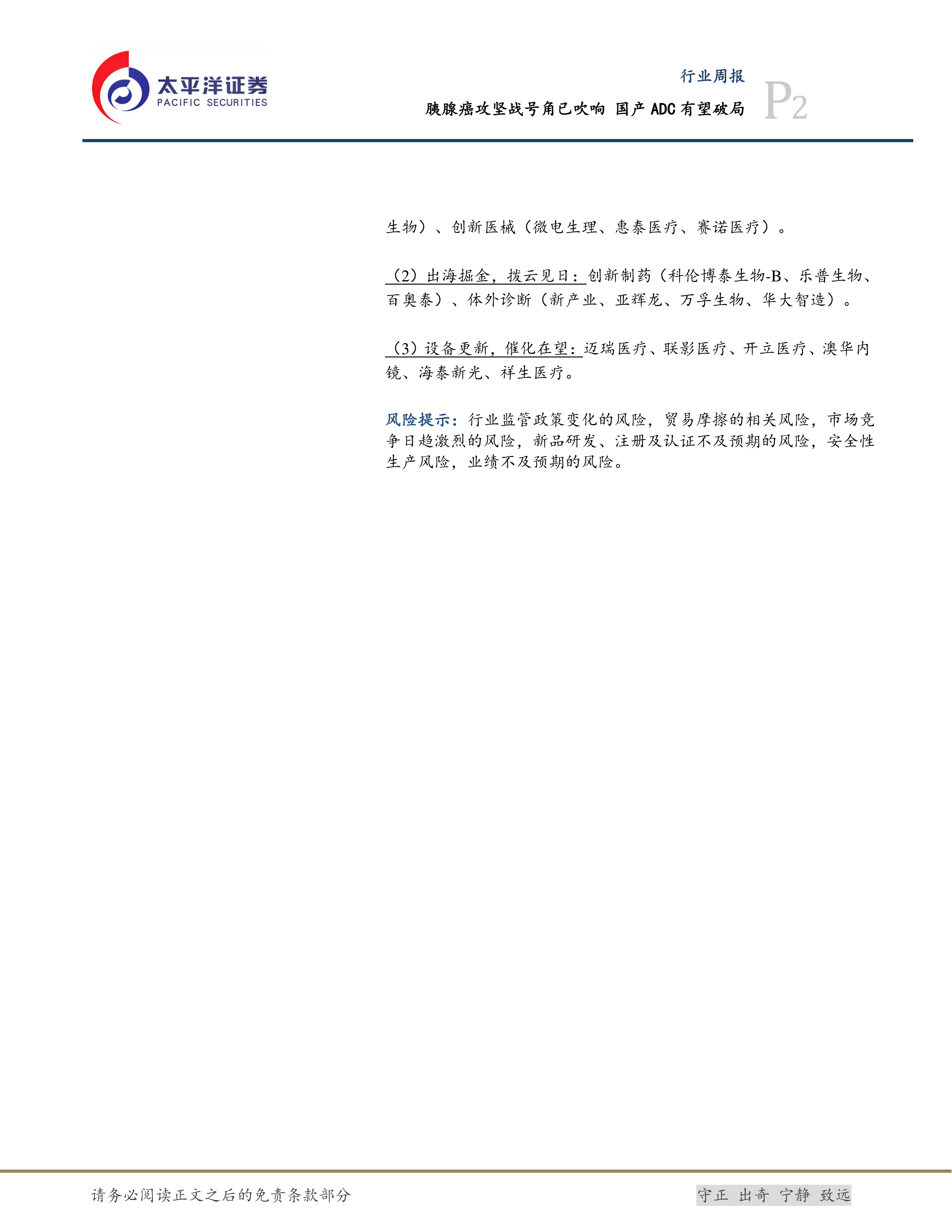 风险提示:行业监管政策变化的风险,贸易摩擦的相关风险,市场竞争日趋激烈的风险,新品研发、注册及认证不及预期的风险,安全性生产风险,业绩不及预期的风险。