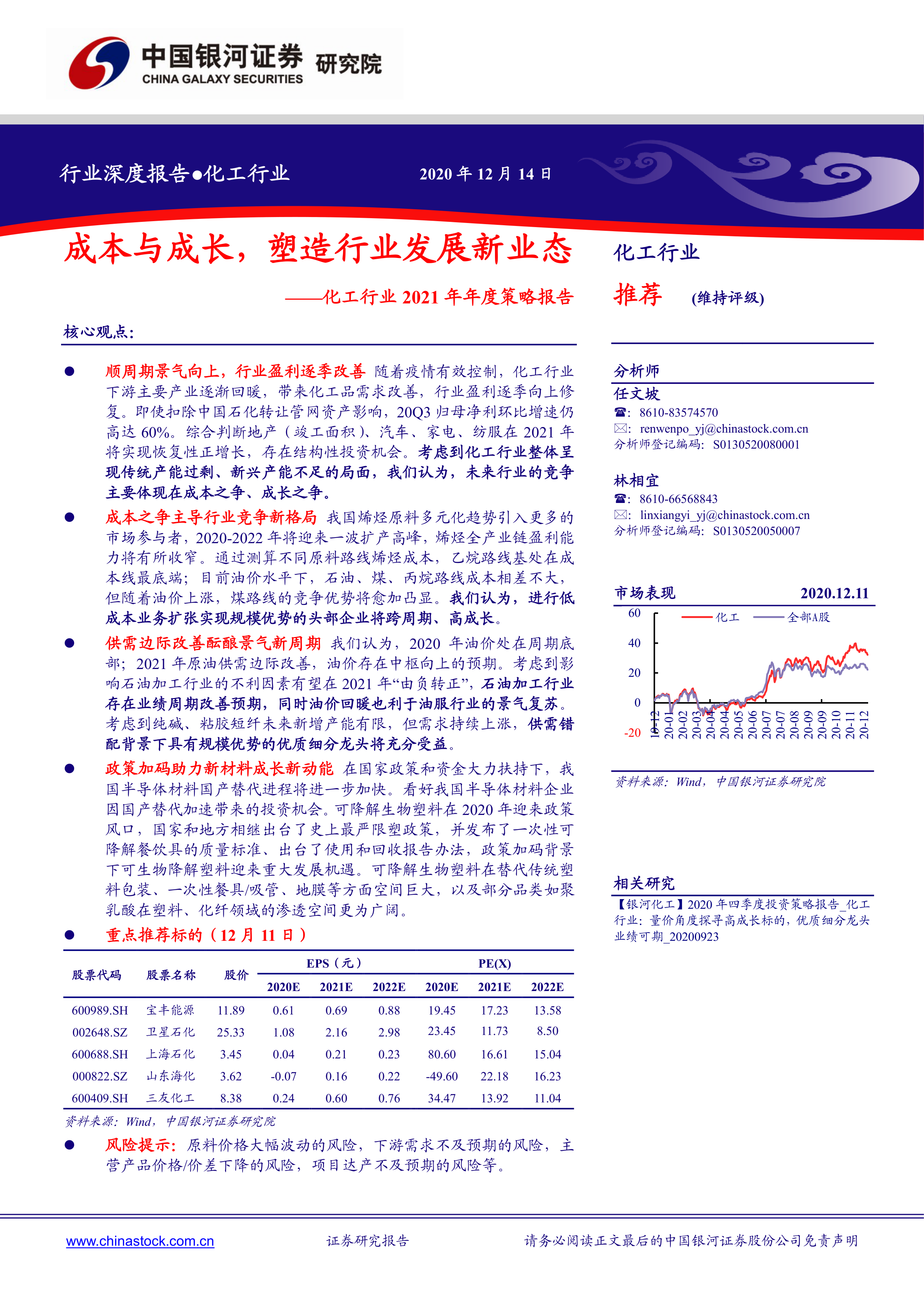 化工行业2021年年度策略报告:成本与成长,塑造行业发展新业态