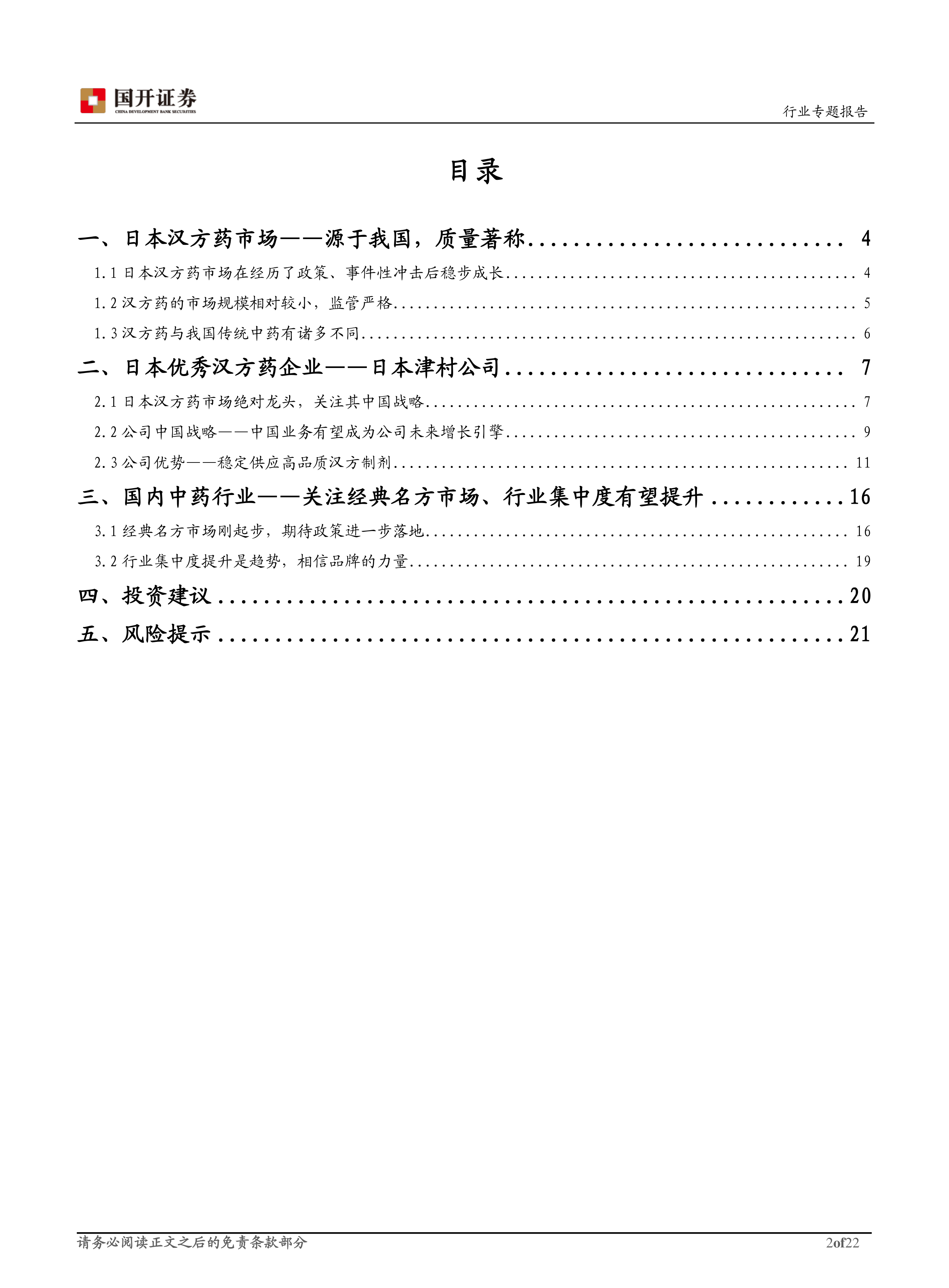 本报告从日本汉方药市场、日本津村公司以及国内中药行业三个方面展开分析。