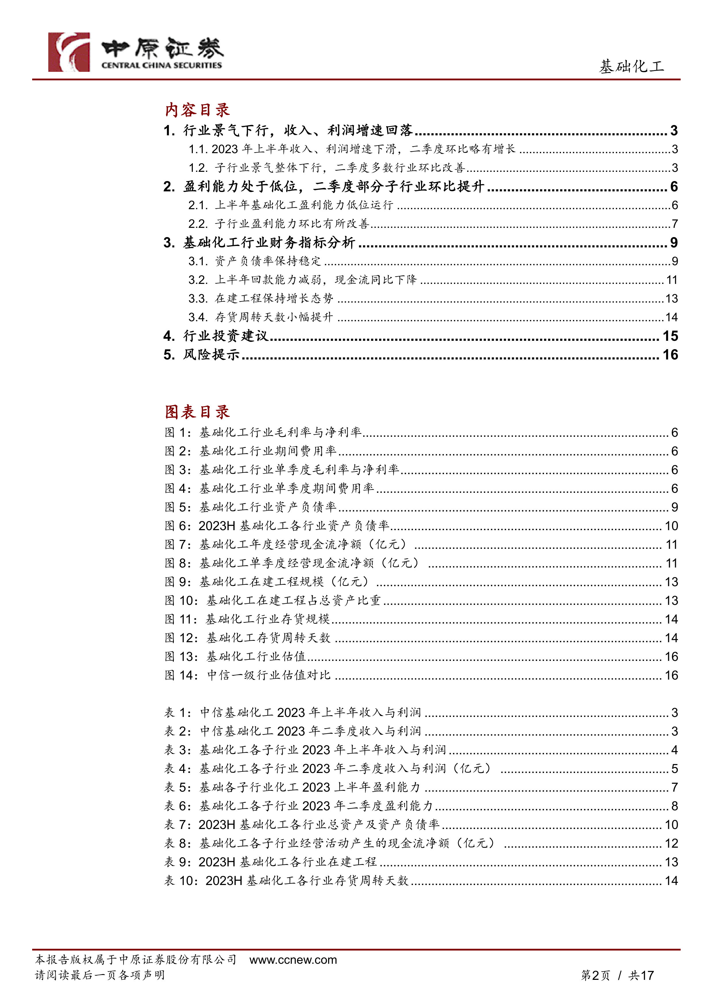 本报告对2023年上半年及二季度基础化工行业进行了深入分析,数据显示行业整体景气度低迷,但二季度出现边际改善。部分子行业表现出复苏迹象,行业龙头企业和部分景气度有望复苏的子行业值得关注。 报告建议投资者关注行业发展趋势,并谨慎评估投资风险。 未来,产业链一体化、低排放、清洁发展的龙头企业有望持续提升市场份额,实现长期增长。