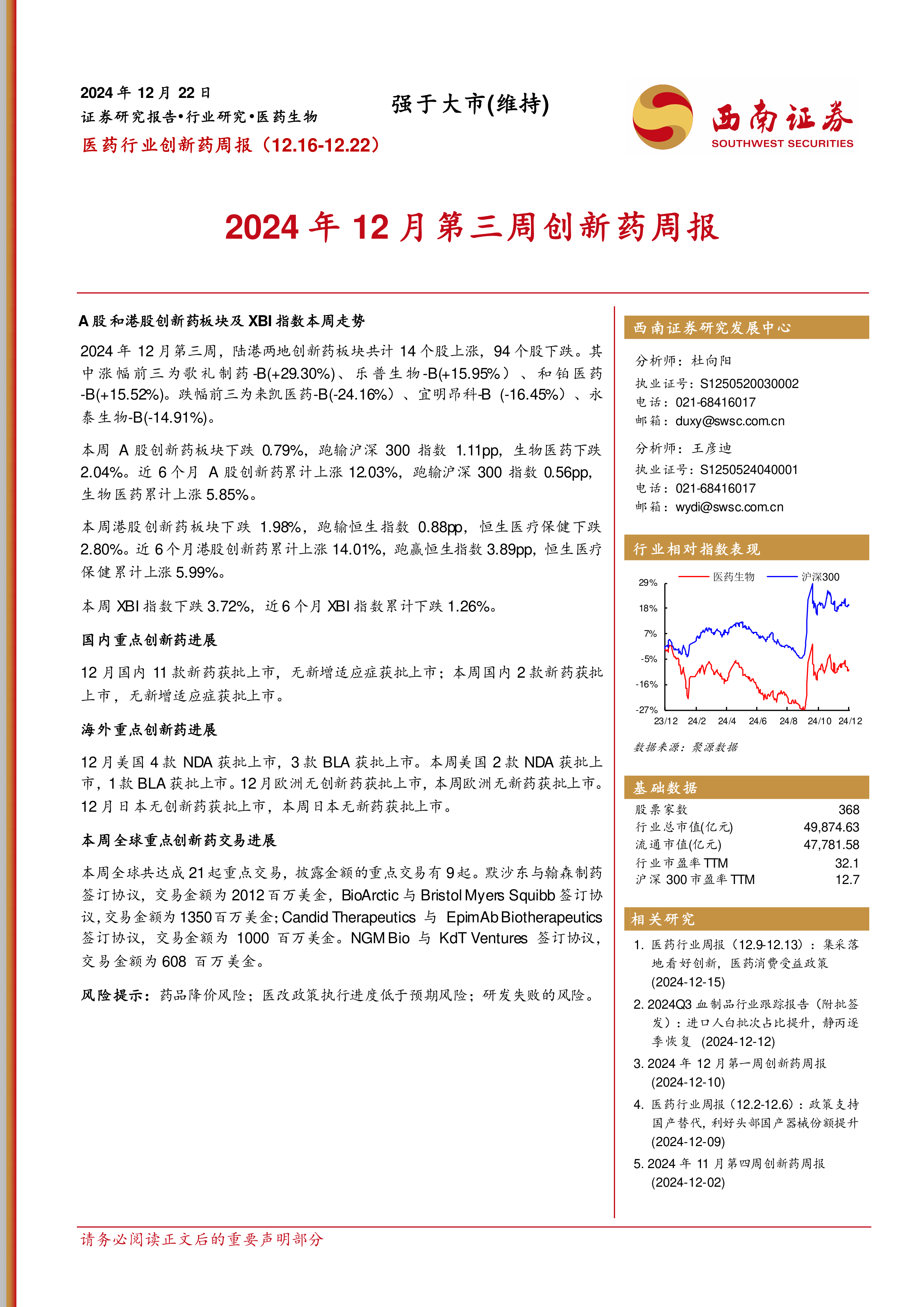 2024年12月第三周创新药周报