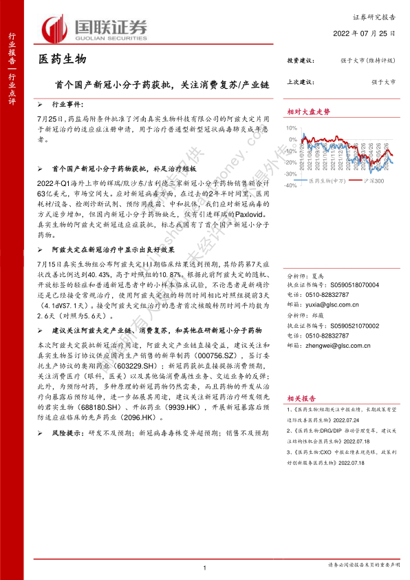 医药生物:首个国产新冠小分子药获批,关注消费复苏/产业链