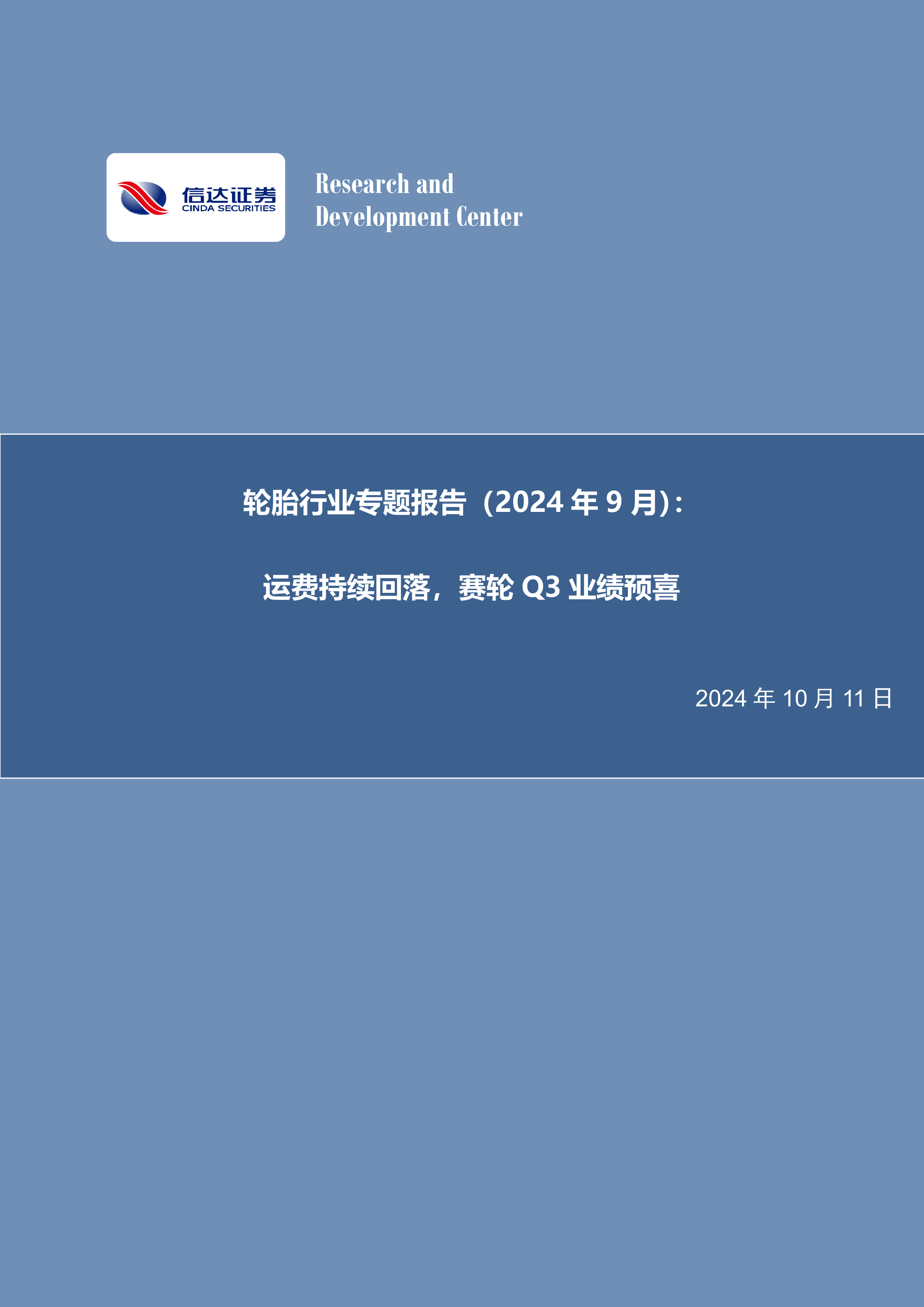 轮胎行业专题报告(2024年9月):运费持续回落,赛轮Q3业绩预喜