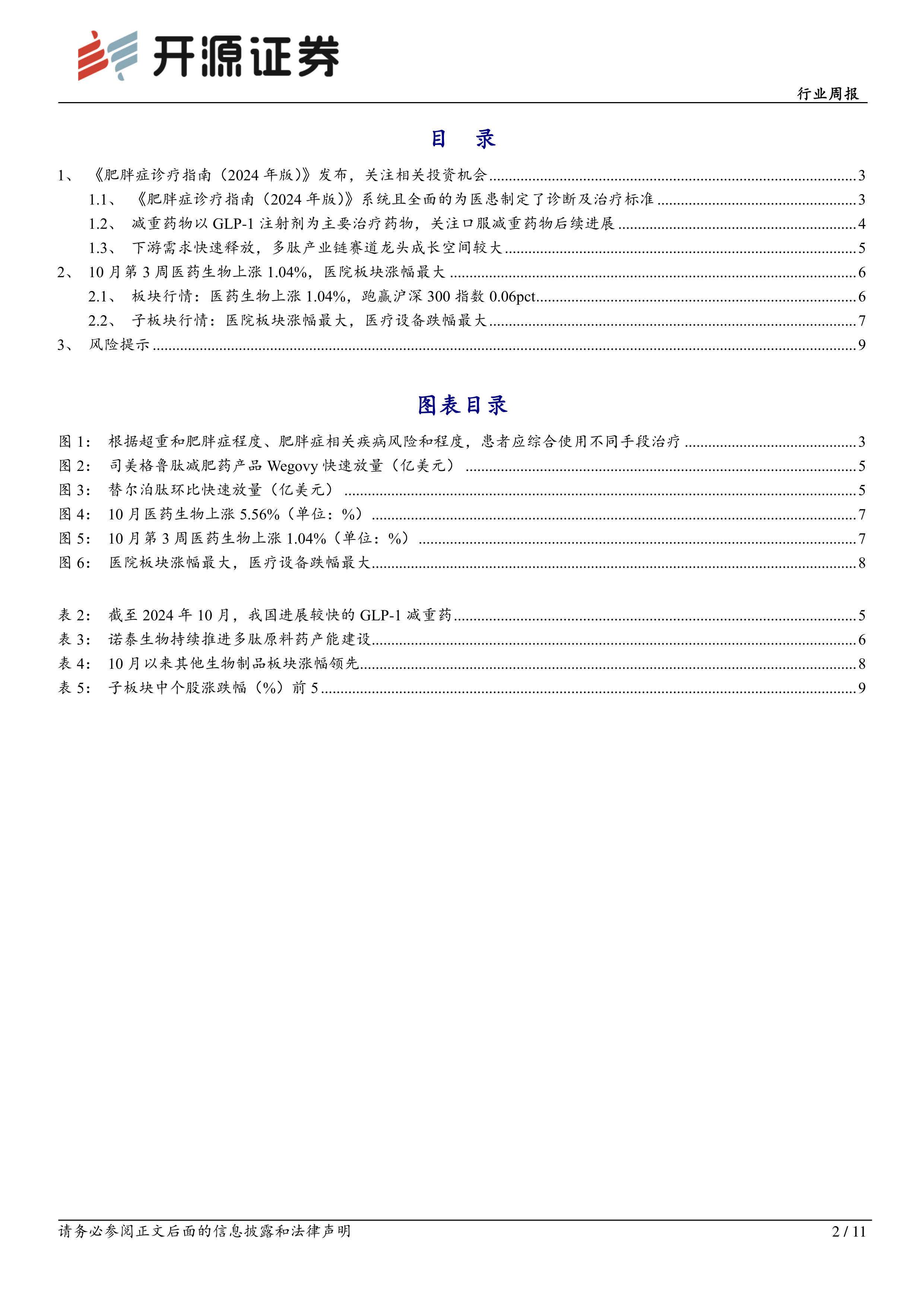 医药生物行业周报:《肥胖症诊疗指南(2024年版)》发布,关注相关投资机会