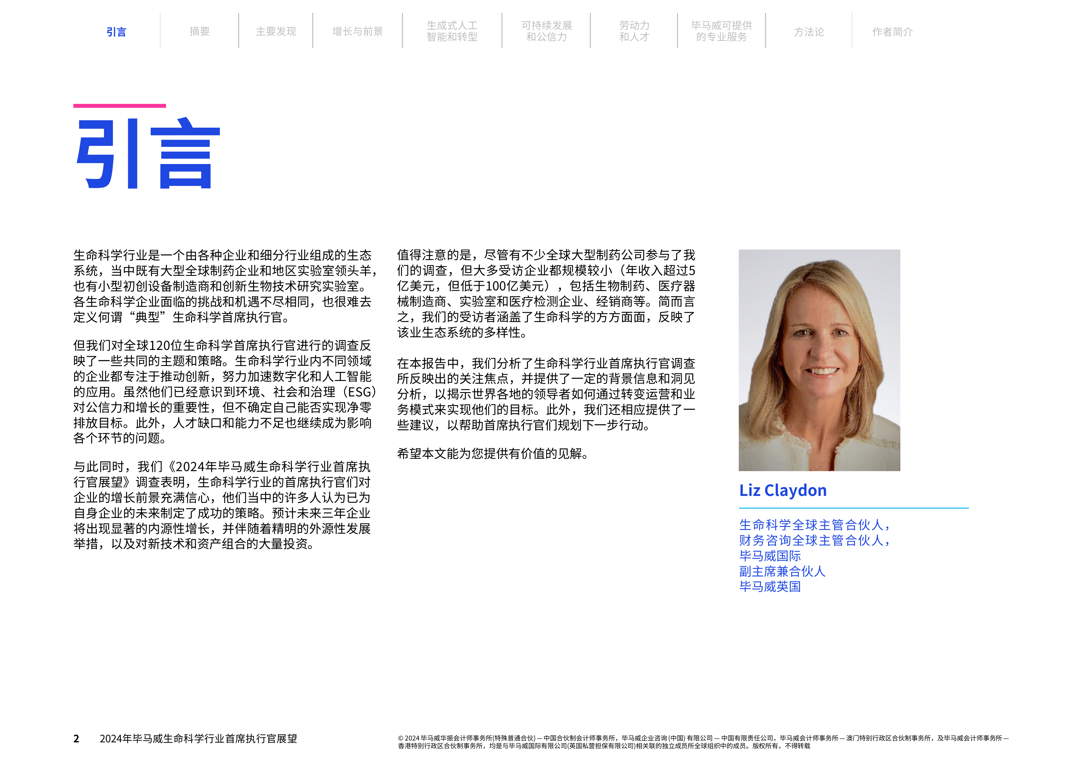 本报告基于毕马威对120位全球生命科学行业首席执行官的调查,分析了该行业当前面临的机遇与挑战。核心观点如下: