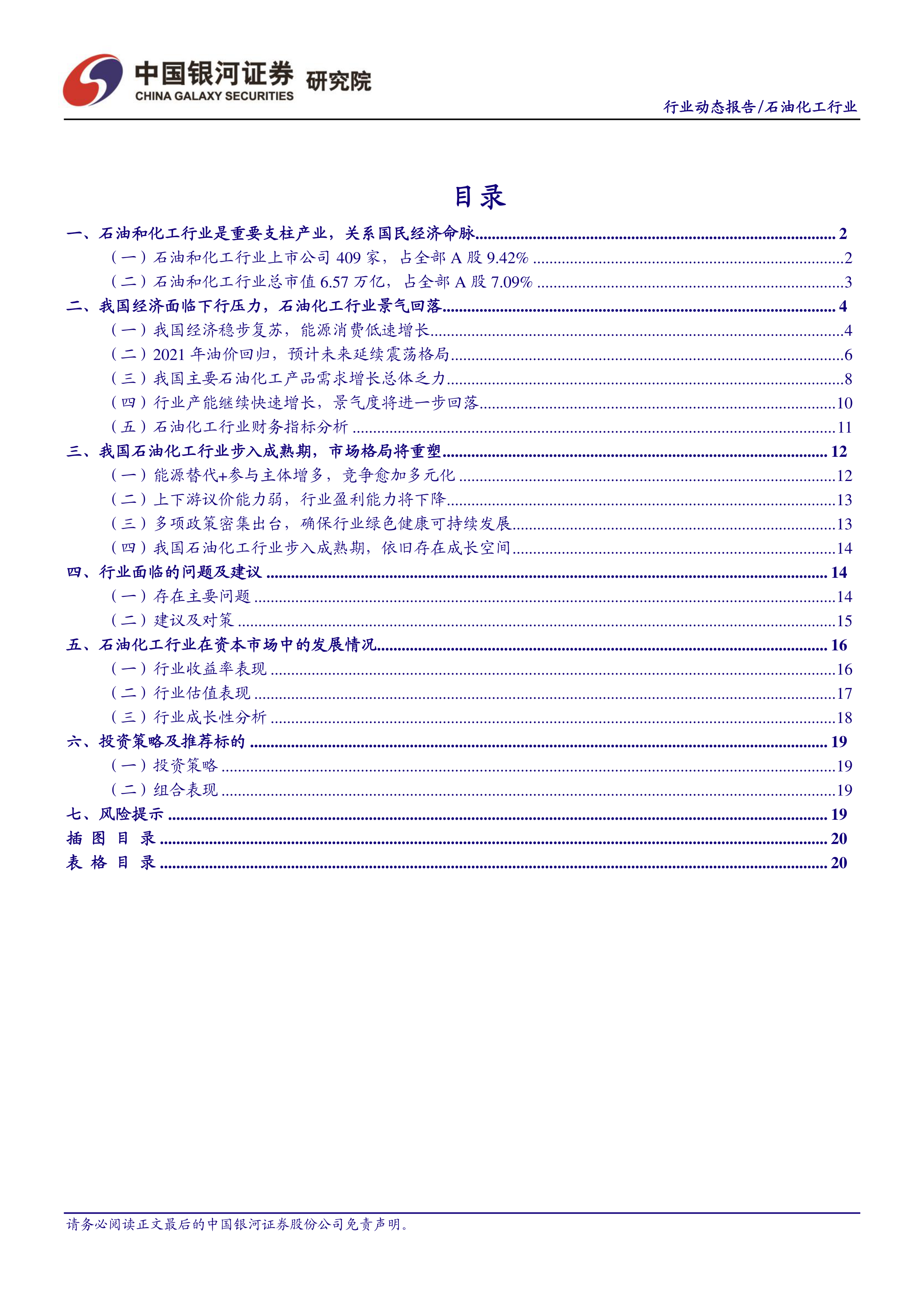 本报告对2021年上半年中国石油化工行业进行了全面的分析,指出行业面临产能过剩和需求增长乏力的挑战,但油价上行以及国家政策支持为行业发展提供了机遇。报告建议关注具备低成本优势和规模扩张能力的头部企业,并推荐了部分投资标的,同时提醒投资者注意潜在风险。 报告数据主要来源于Wind数据库和中国银河证券研究院,并结合了行业专家分析和市场观察。 未来行业发展仍需关注宏观经济形势、油价波动、政策变化以及行业自身转型升级的进程。