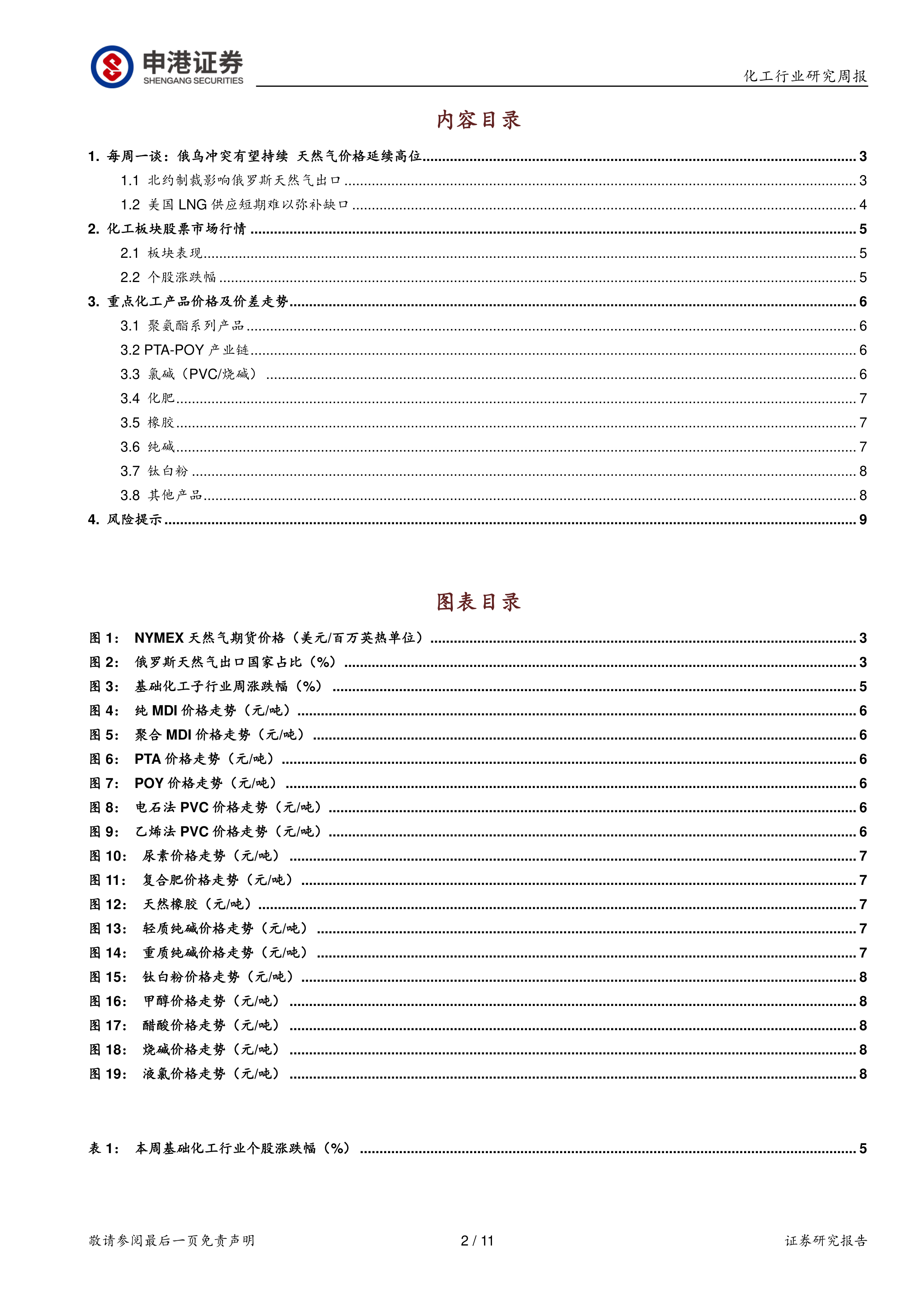 化工行业周报:俄乌冲突有望持续 天然气价格延续高位