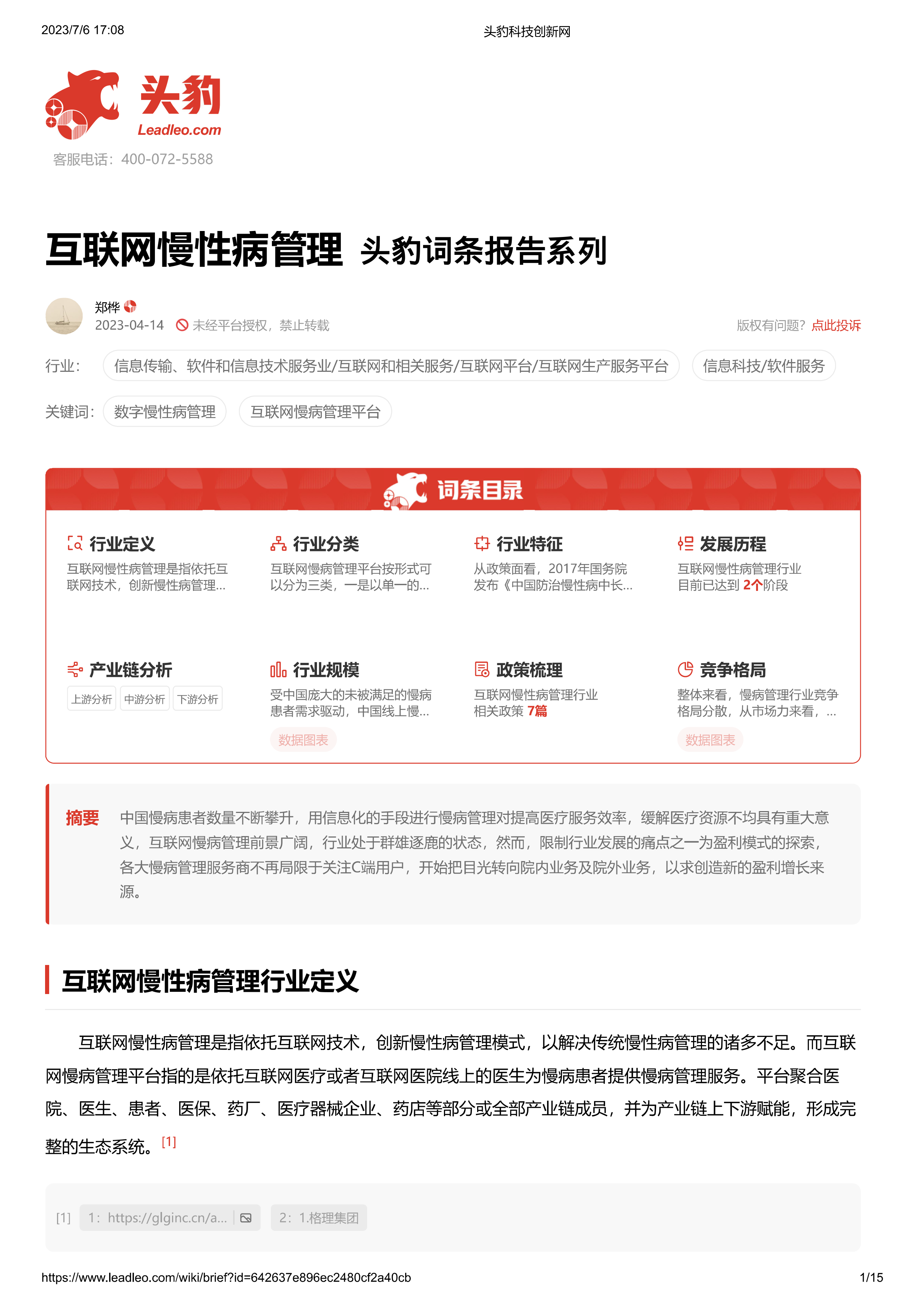 互联网慢性病管理 头豹词条报告系列