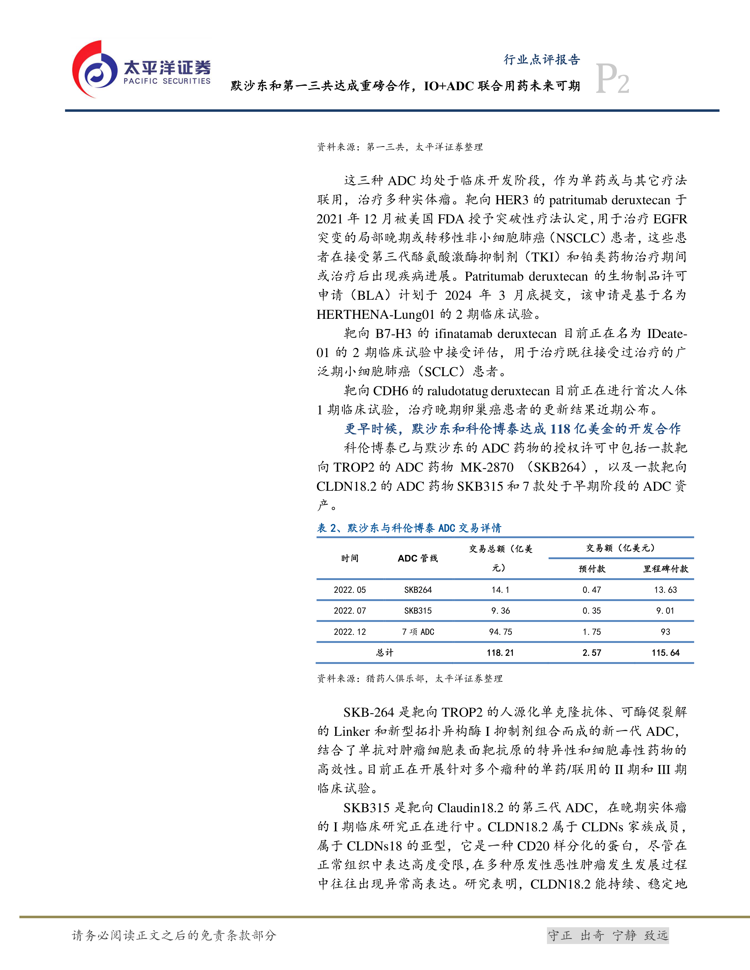 更早时候,默沙东和科伦博泰达成118亿美金的开发合作科伦博泰已与默沙东的ADC药物的授权许可中包括一款靶向TROP2的ADC药物MK-2870(SKB264),以及一款靶向CLDN18.2的ADC药物SKB315和7款处于早期阶段的ADC资产。