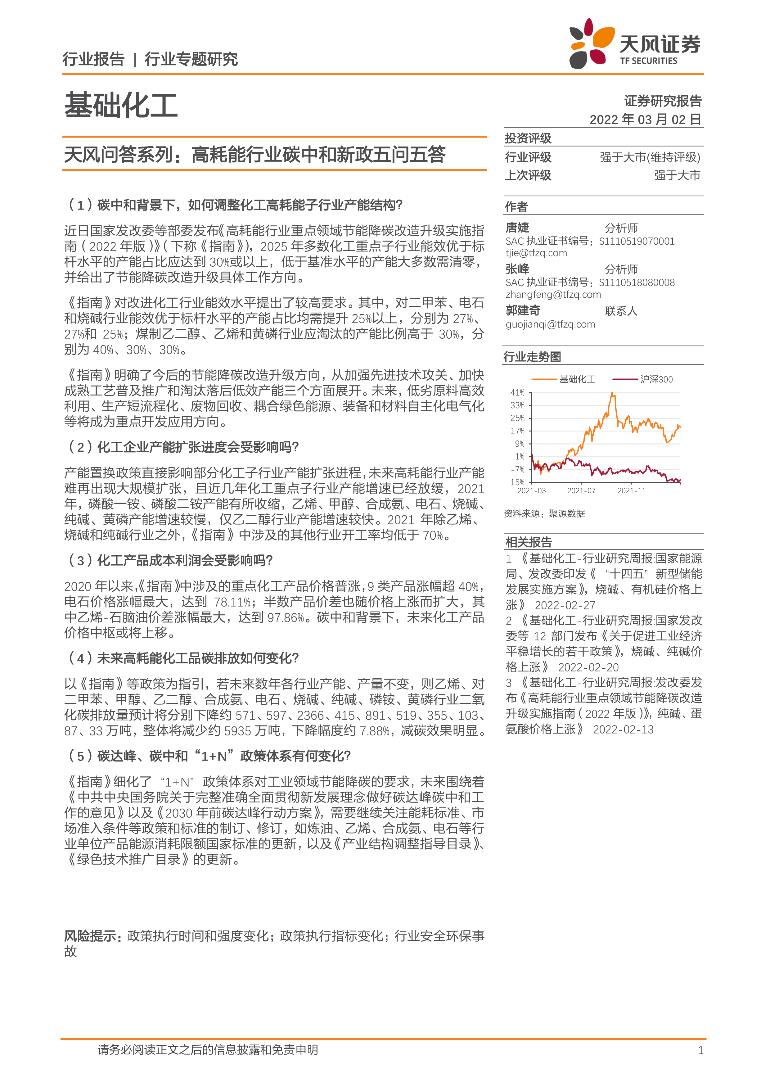 基础化工天风问答系列:高耗能行业碳中和新政五问五答