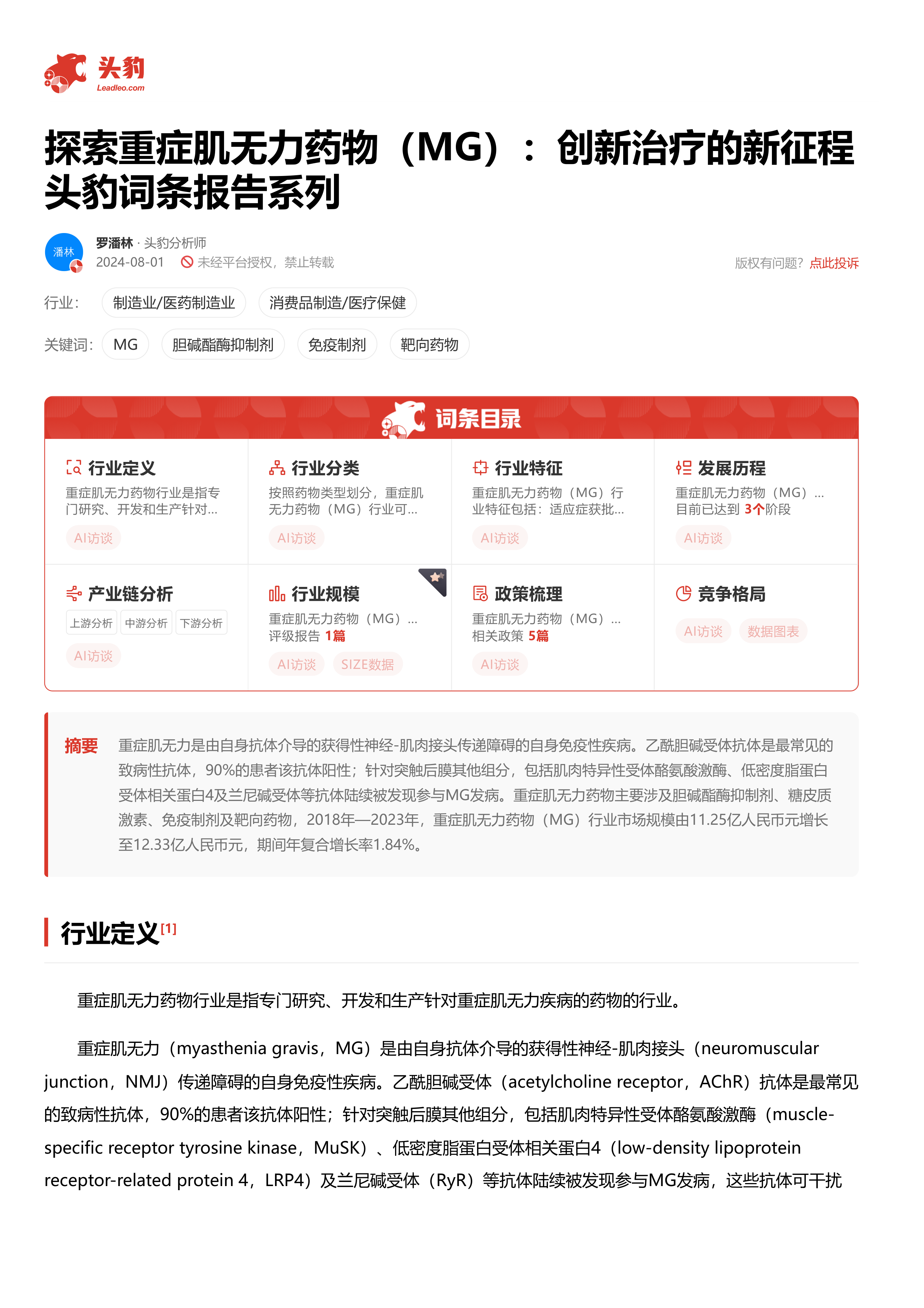 探索重症肌无力药物(MG):创新治疗的新征程 头豹词条报告系列