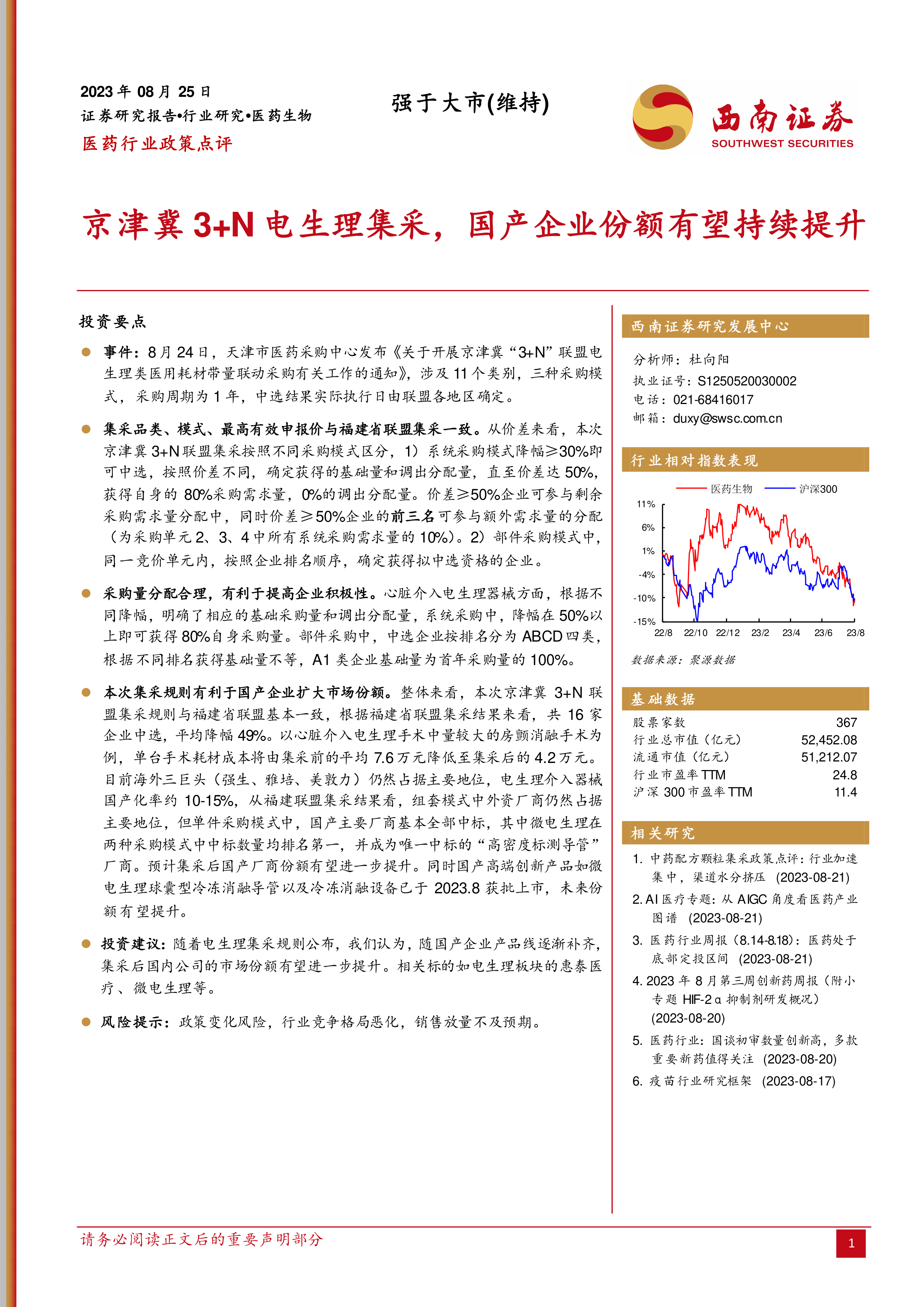 本报告主要围绕京津冀“3+N”联盟电生理类医用耗材带量联动采购政策展开分析,内容涵盖政策解读、市场影响分析以及投资建议等方面。