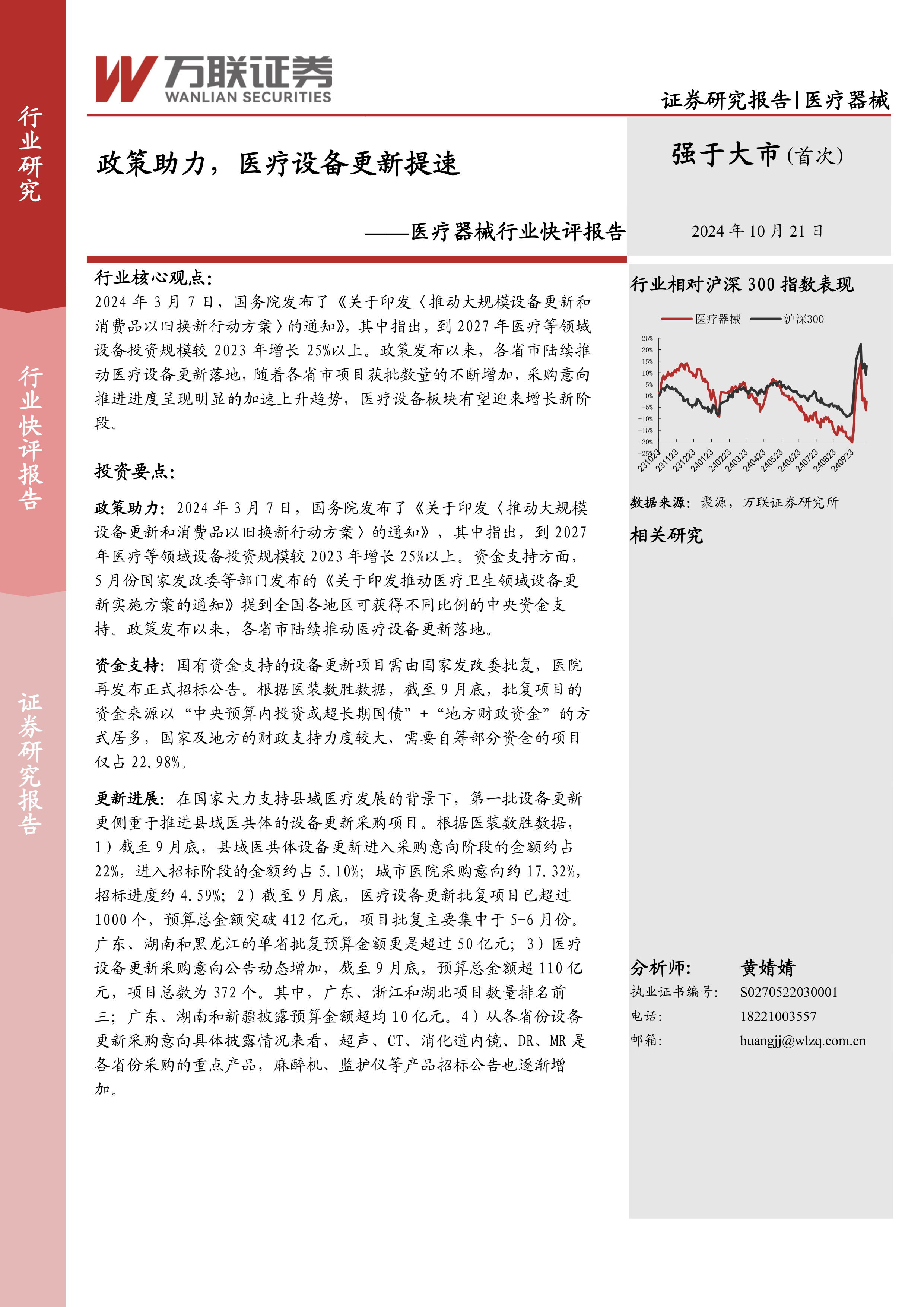 本报告是一份医疗器械行业快评报告,主要分析了国家政策推动下医疗设备更新的现状及未来发展趋势。