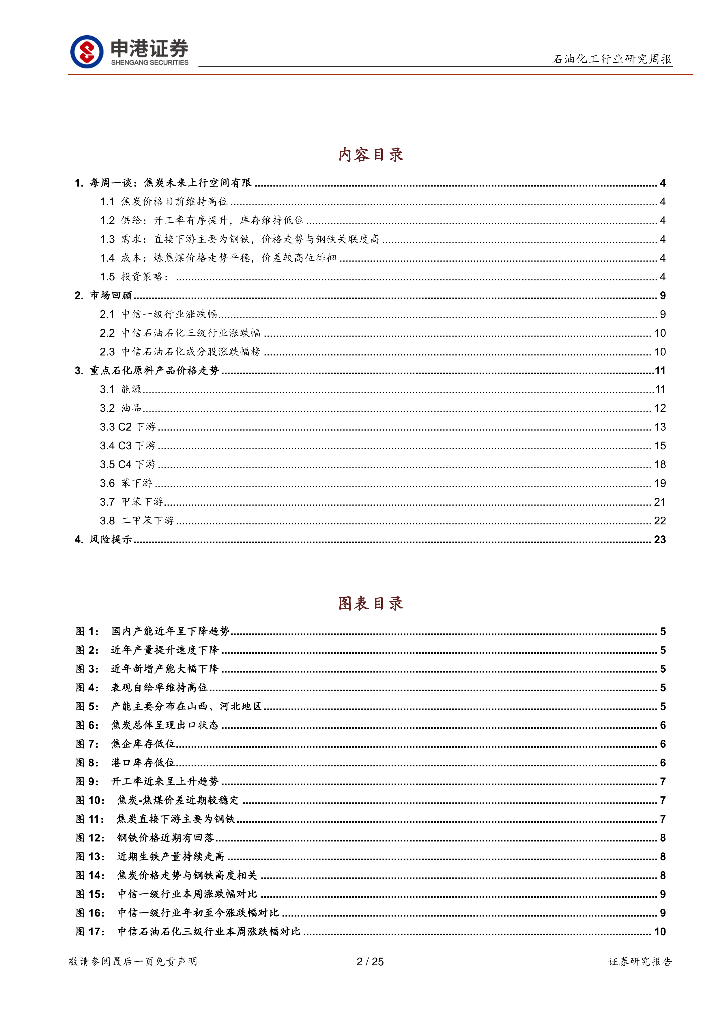 本报告对焦炭市场进行了深入分析,认为焦炭价格短期内将维持稳定,但由于钢铁行业进入季节性淡季,产量增速放缓,钢价涨幅空间有限,因此焦炭价格上行空间有限。报告建议关注宝丰能源和金能科技两家公司。 报告还提供了石油化工行业市场回顾以及重点石化原料产品价格走势图,为投资者提供参考信息。 需要注意的是,报告中大量图表数据未被完整转录,这限制了对报告内容的全面理解。 完整的图表数据对于更准确地评估焦炭市场前景至关重要。