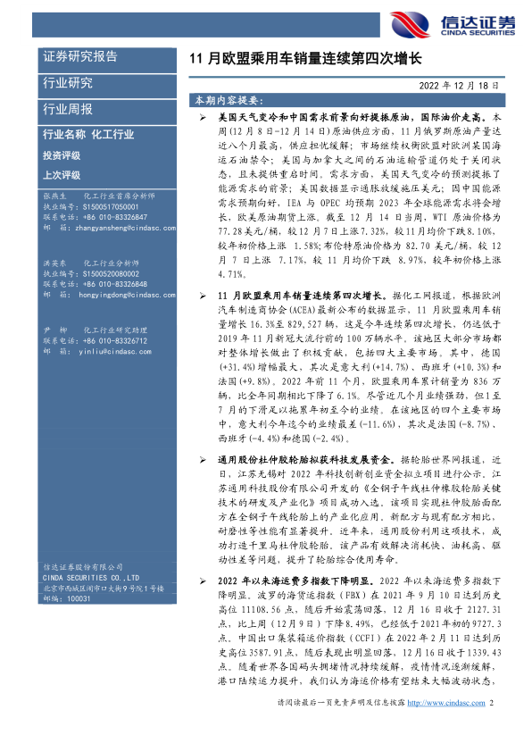 化工行业周报:11月欧盟乘用车销量连续第四次增长
