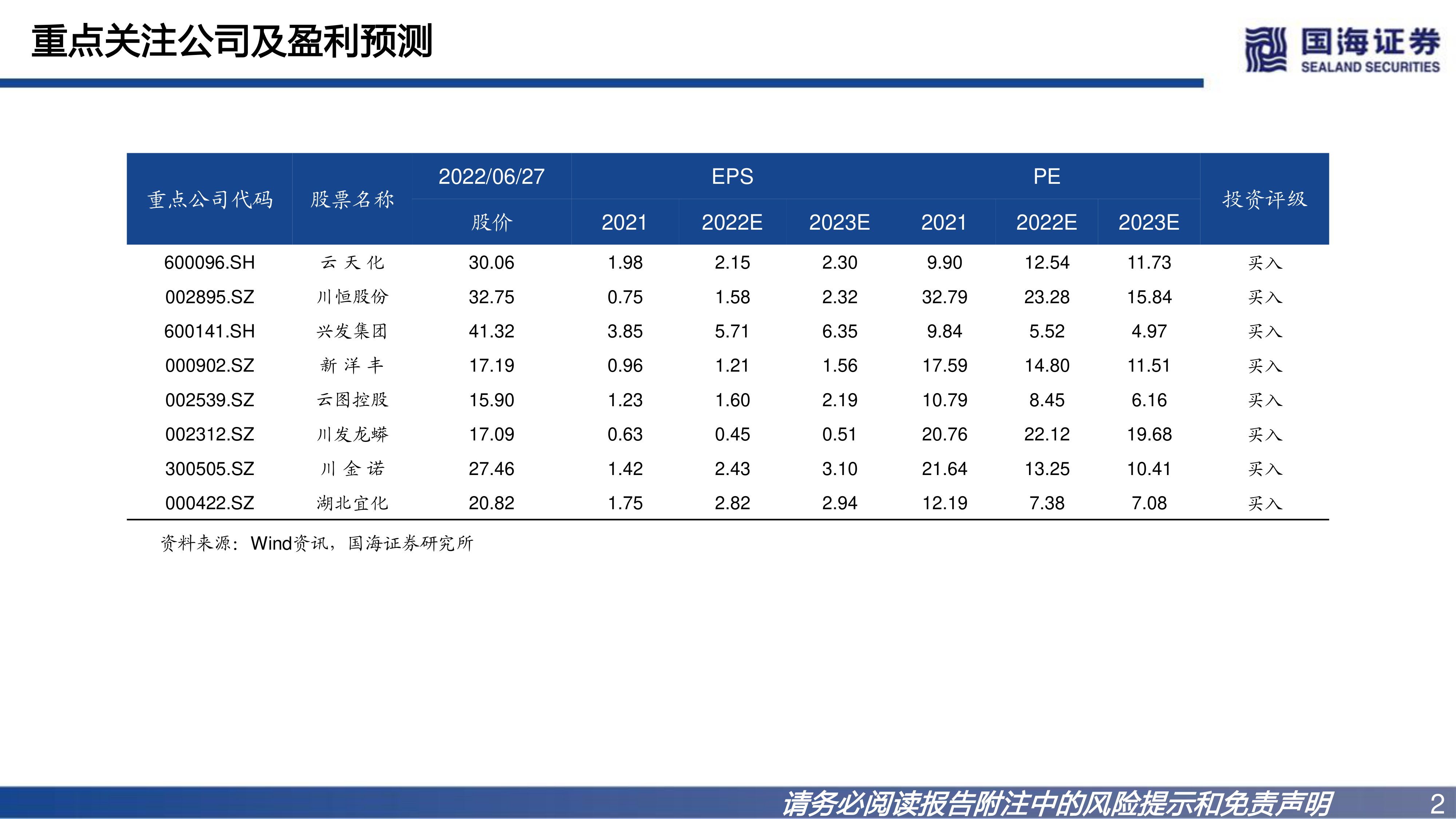 建议关注:云天化、兴发集团、川恒股份、川发龙蟒、新洋丰、湖北宜化、云图控股等。