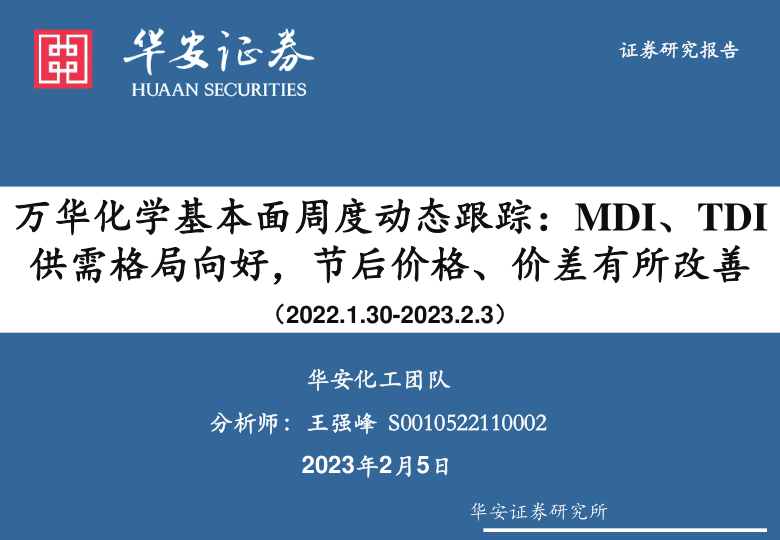 化工:万华化学基本面周度动态跟踪:MDI、TDI供需格局向好,节后价格、价差有所改善
