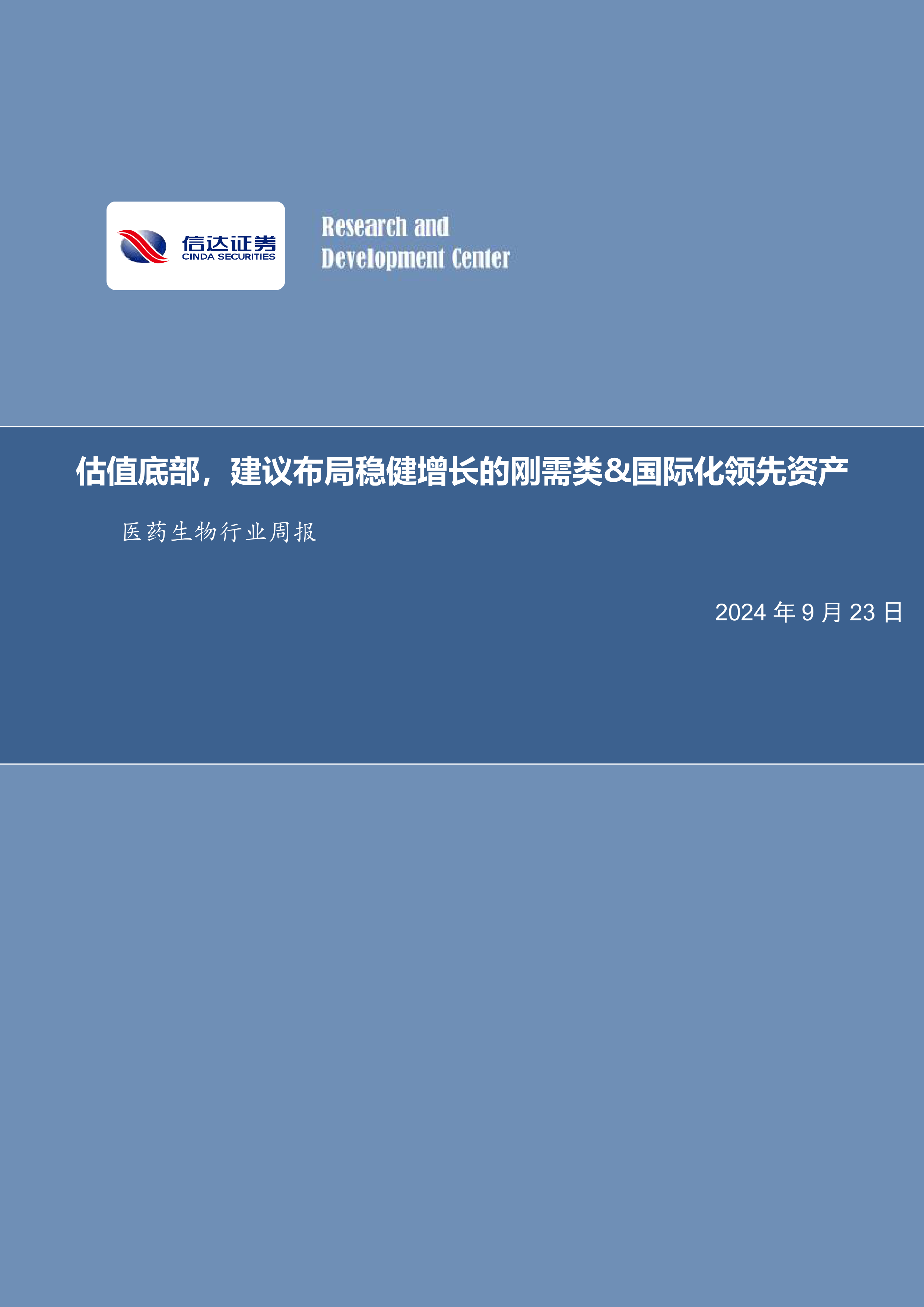 医药生物行业周报:估值底部,建议布局稳健增长的刚需类&国际化领先资产