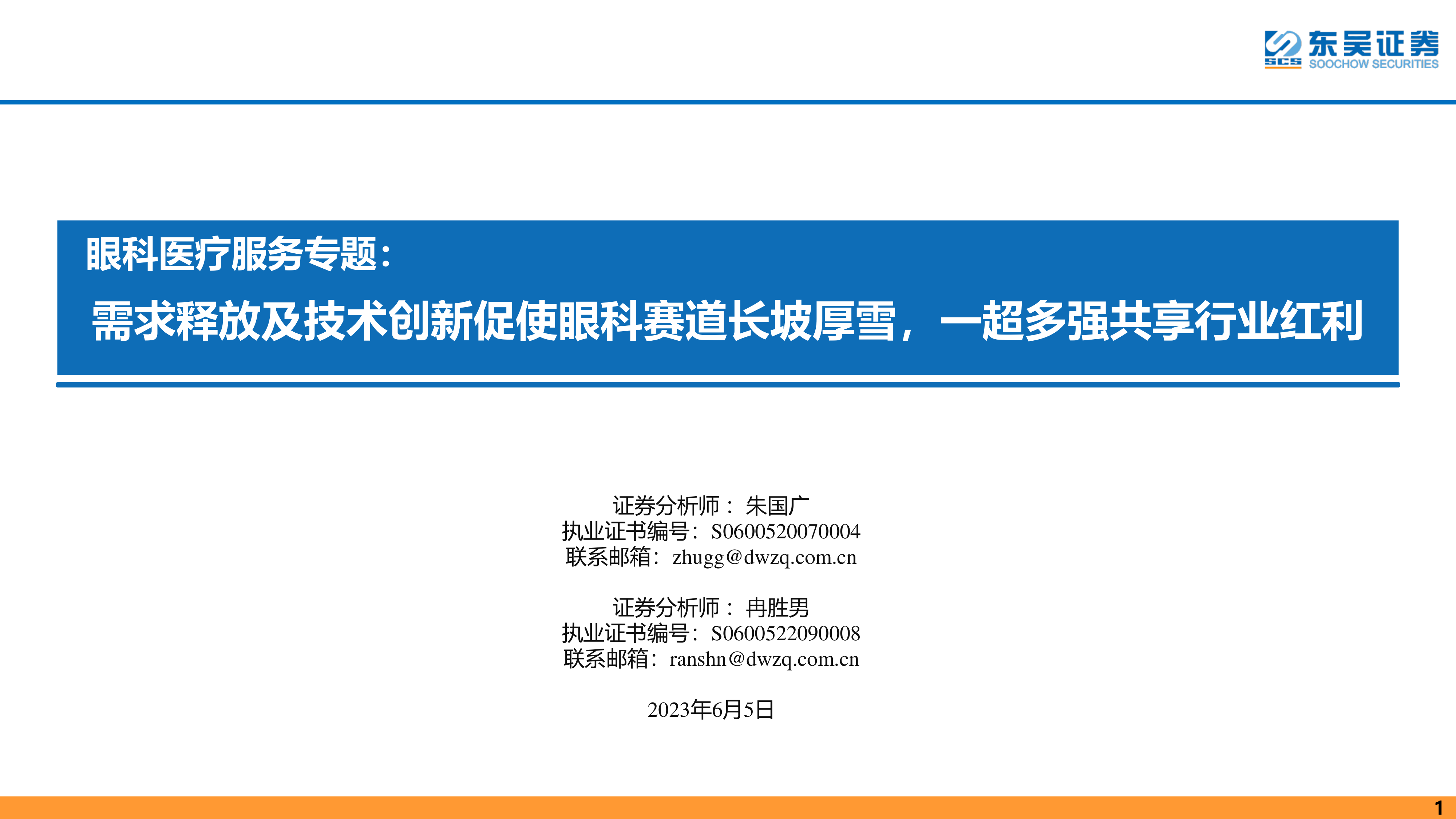 眼科医疗服务专题:需求释放及技术创新促使眼科赛道长坡厚雪,一超多强共享行业红利
