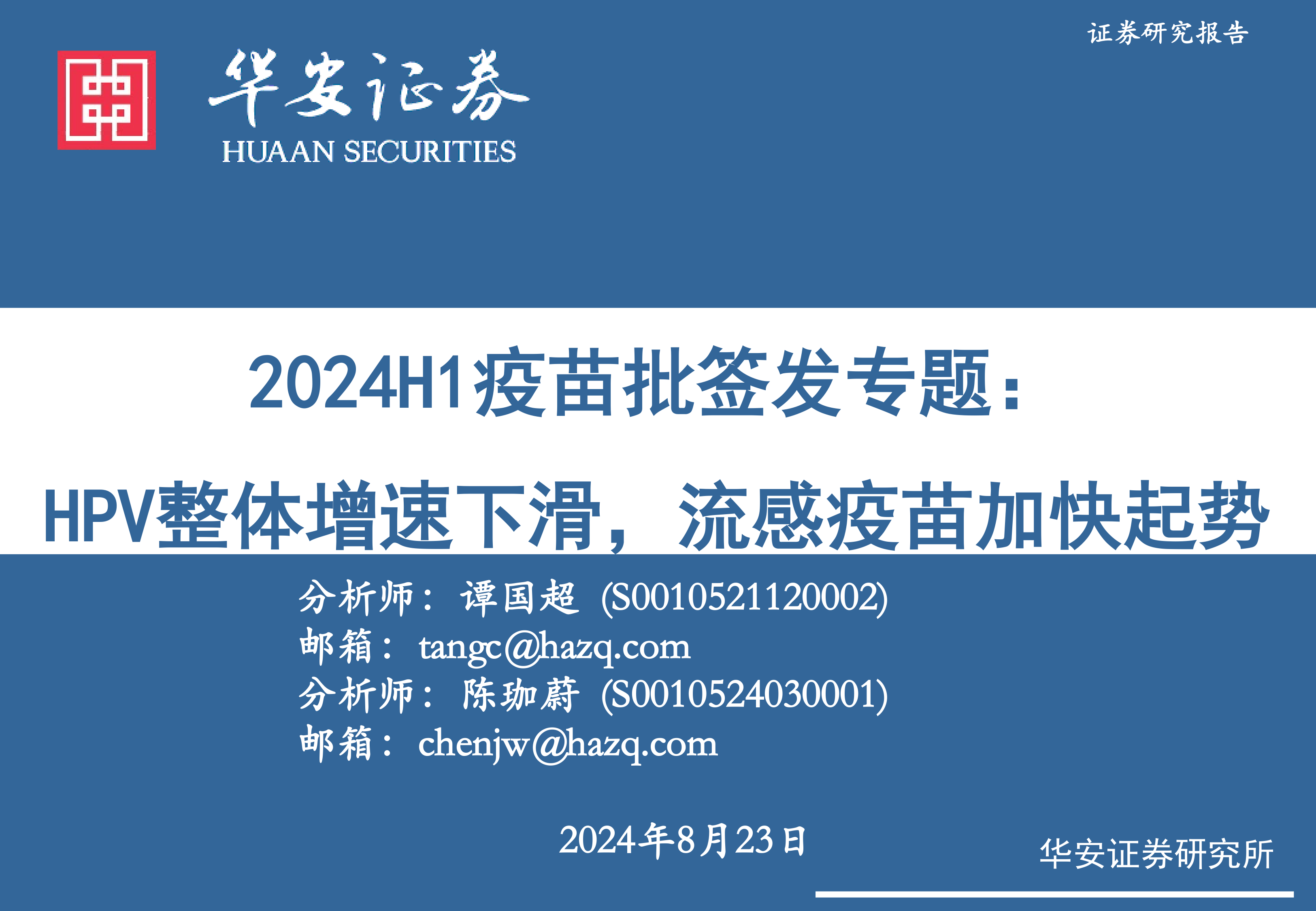 2024H1疫苗批签发专题:HPV整体增速下滑,流感疫苗加快起势