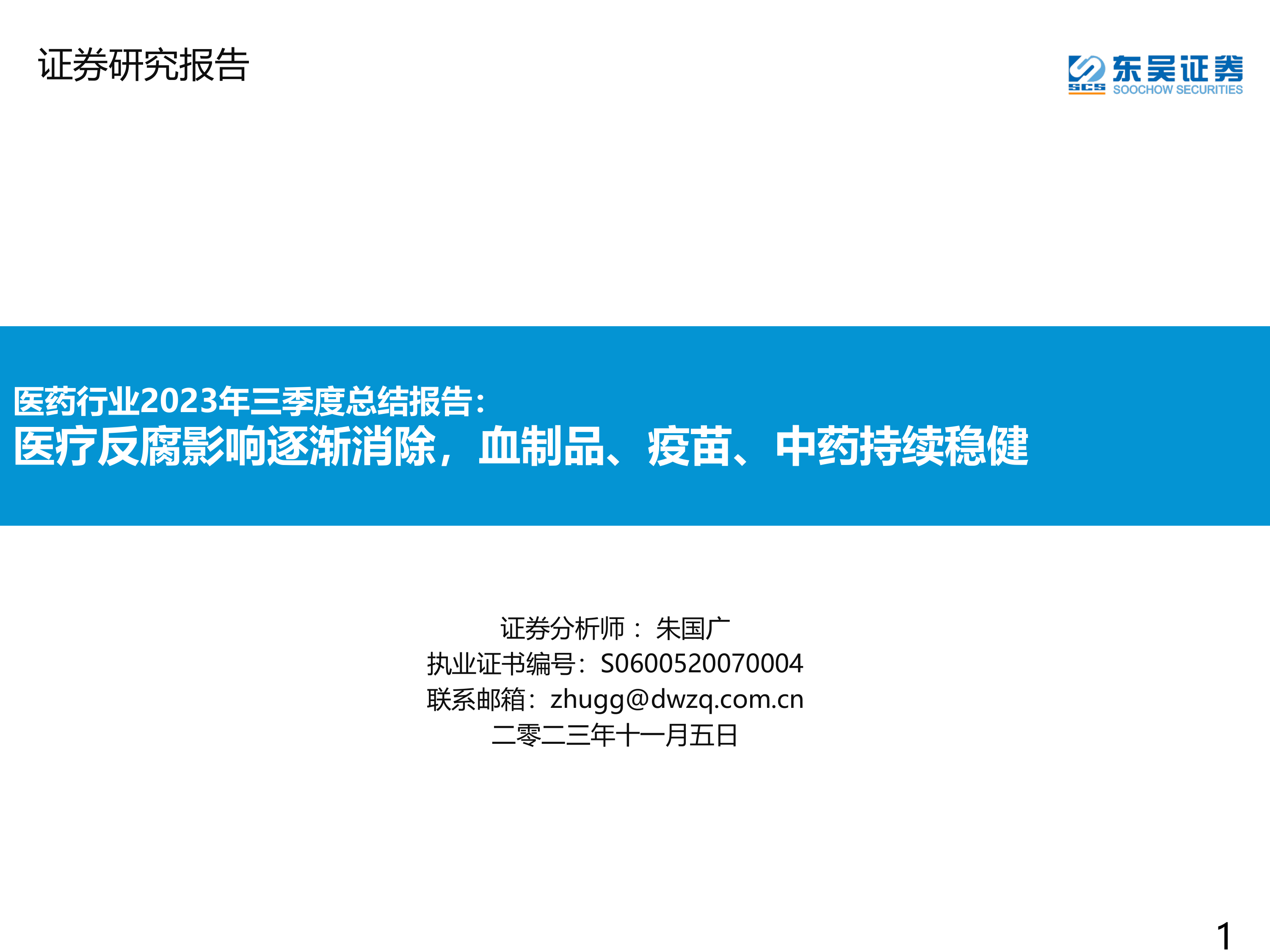 医药行业2023年三季度总结报告:医疗反腐影响逐渐消除,血制品、疫苗、中药持续稳健