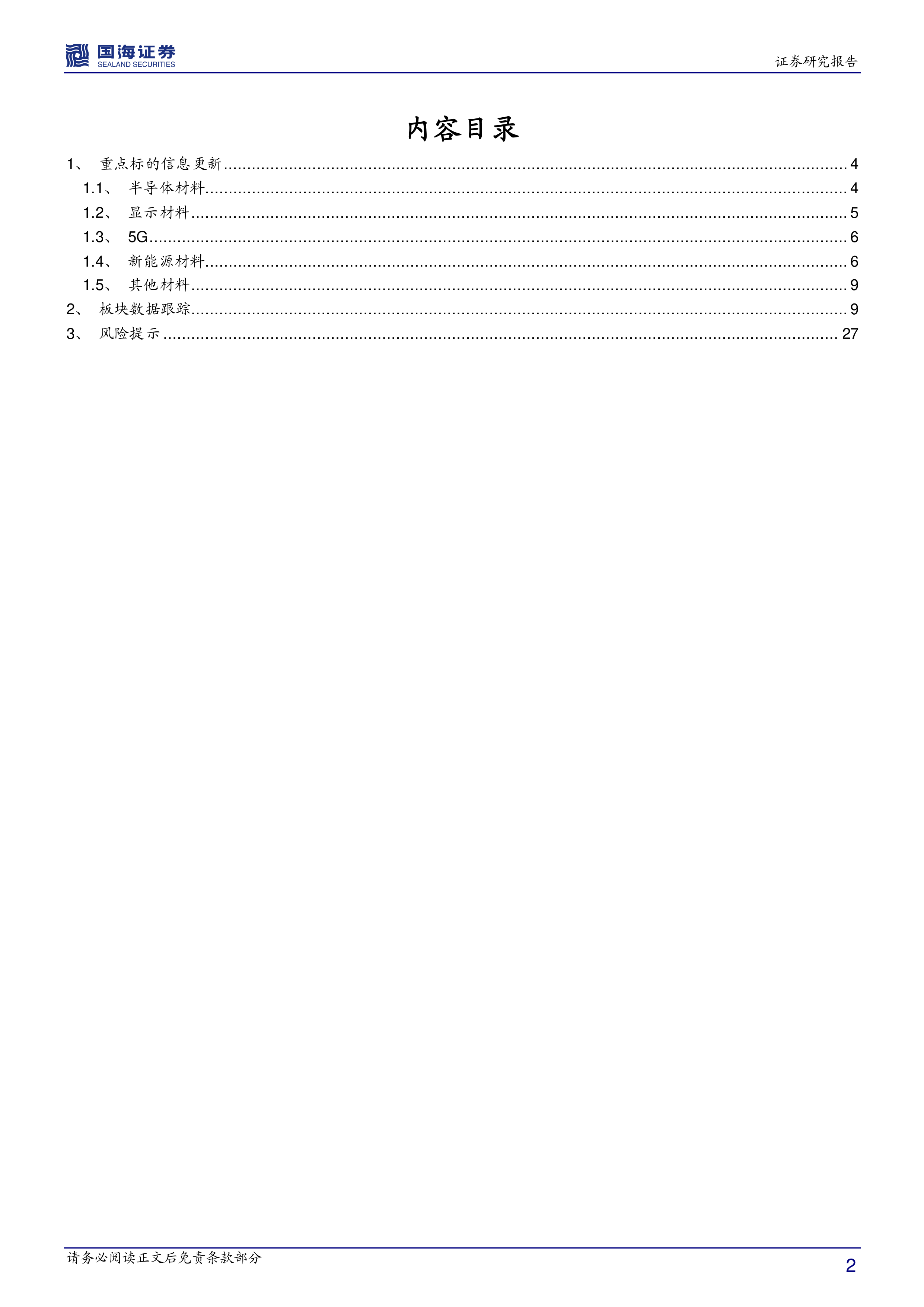本报告主要从重点标的信息更新、板块数据跟踪以及风险提示三个方面对化工新材料行业进行分析。