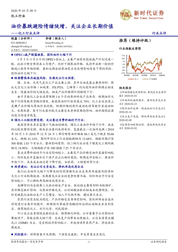 化工行业点评:油价暴跌避险情绪陡增,关注企业长期价值