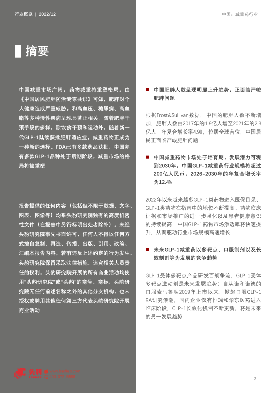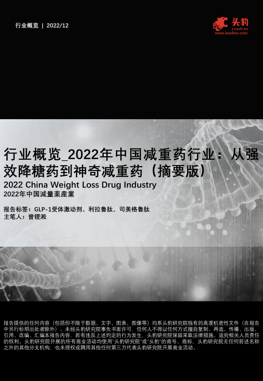 2022年中国减重药行业:从强效降糖药到神奇减重药(摘要版)