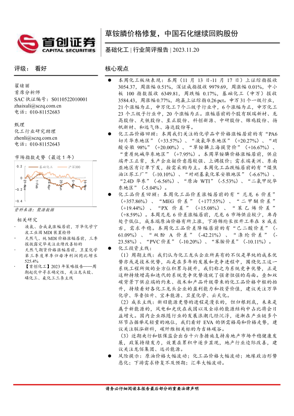 基础化工:草铵膦价格修复,中国石化继续回购股份