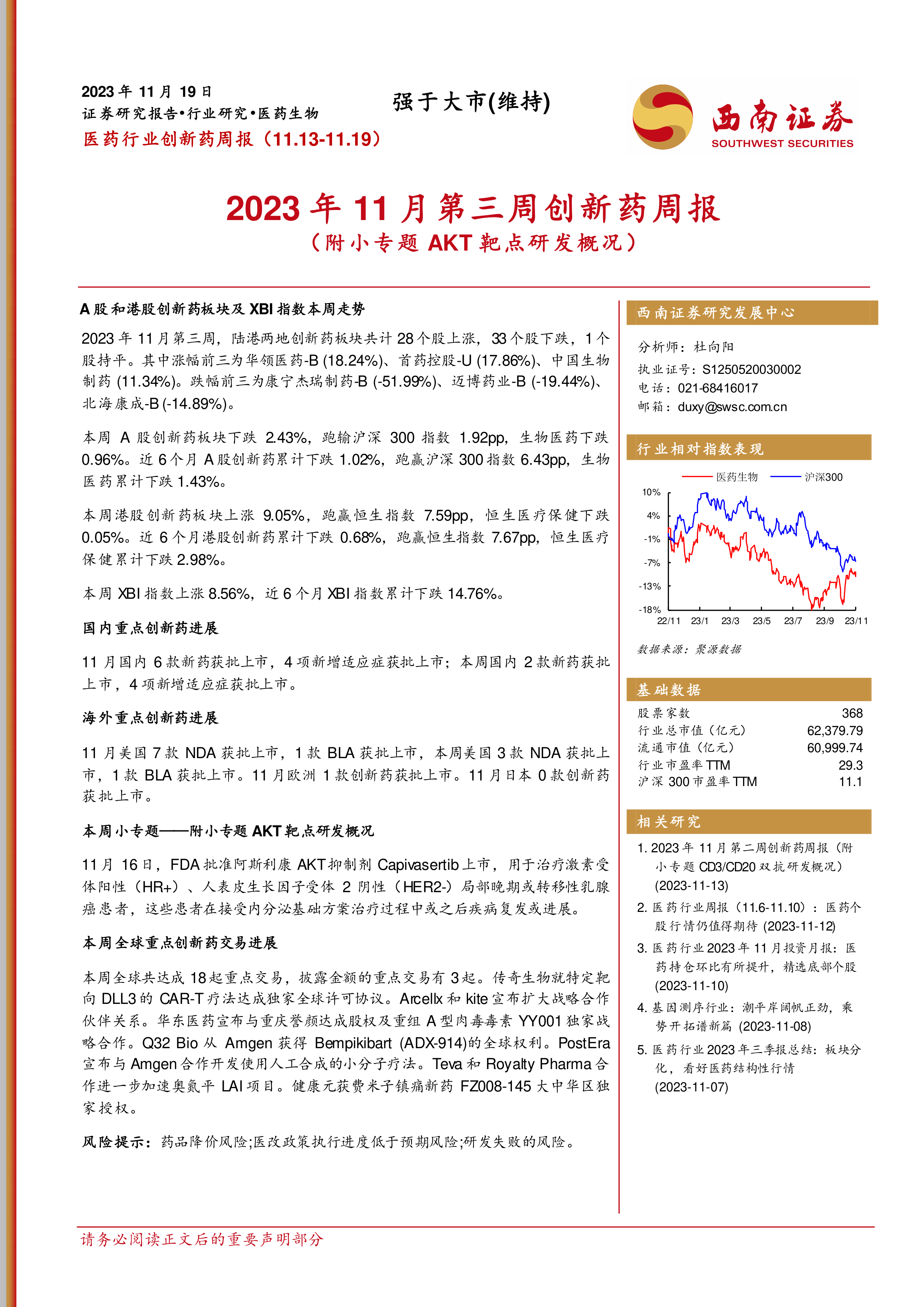 2023年11月第三周创新药周报(附小专题AKT靶点研发概况)