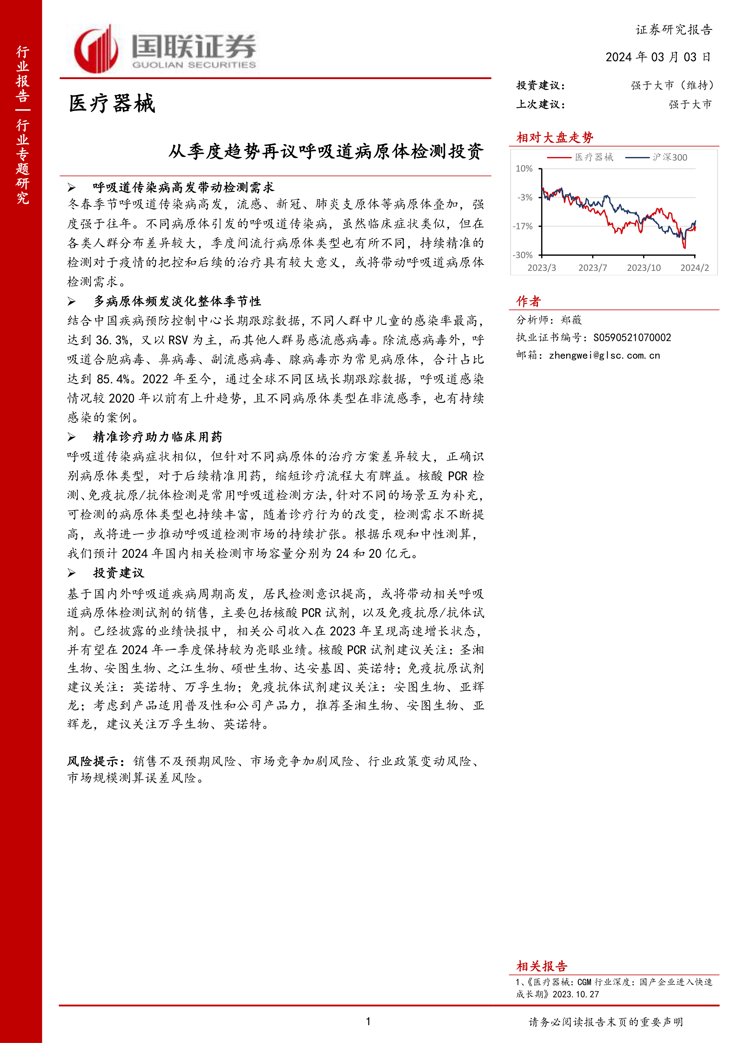 医疗器械行业专题研究:从季度趋势再议呼吸道病原体检测投资
