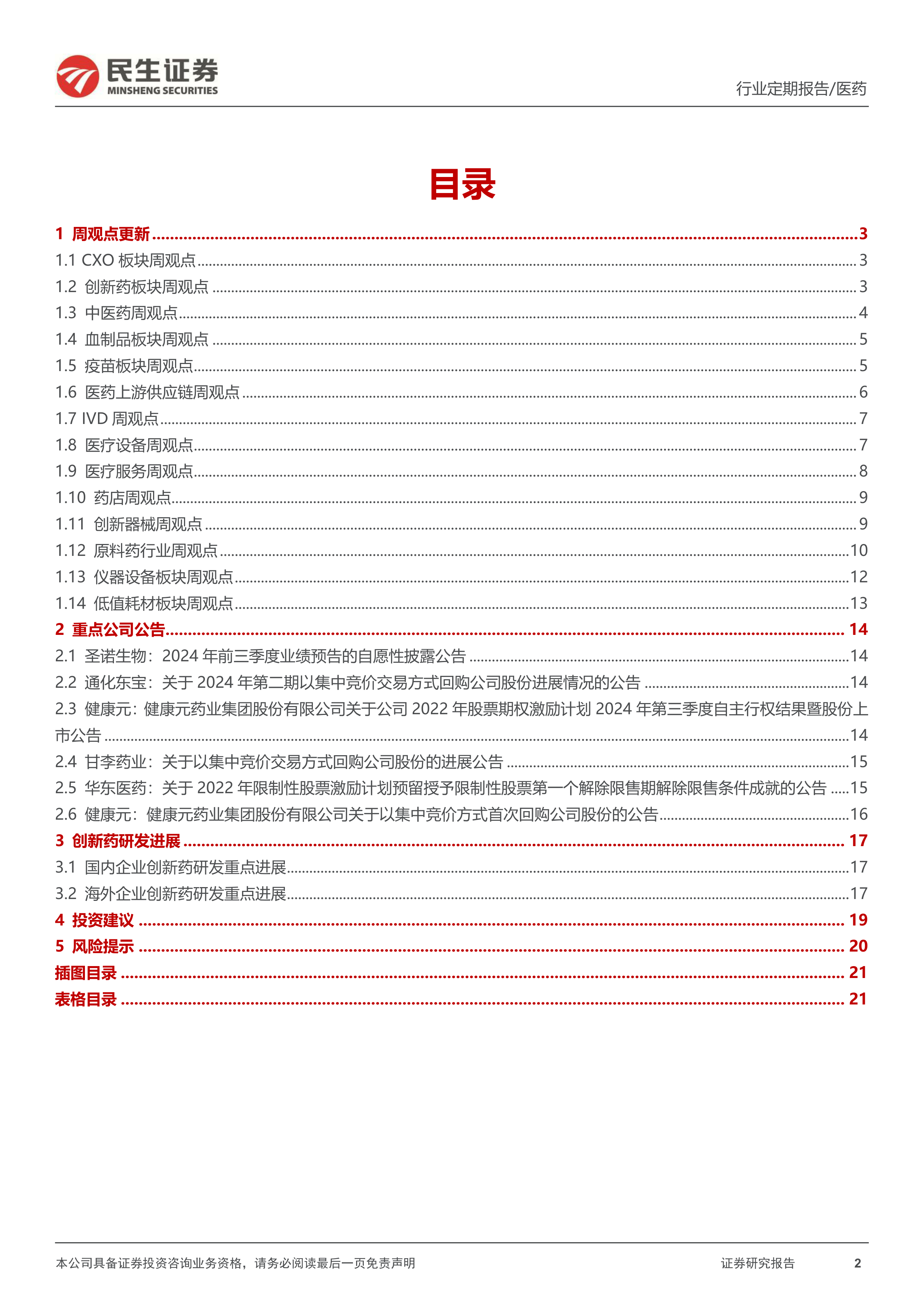 风险提示:集采压力大于预期风险;产品研发进度不及预期风险;竞争加剧风险;政策监管环境变化风险;药物研发服务市场需求下降的风险。