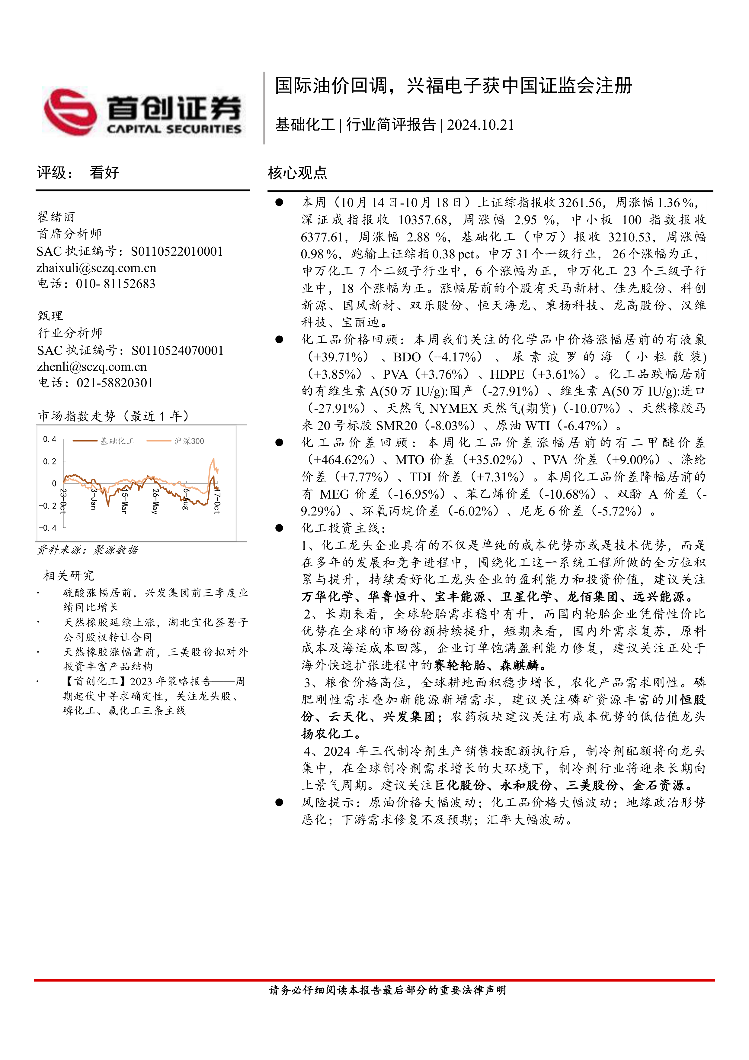 基础化工行业简评报告:国际油价回调,兴福电子获中国证监会注册