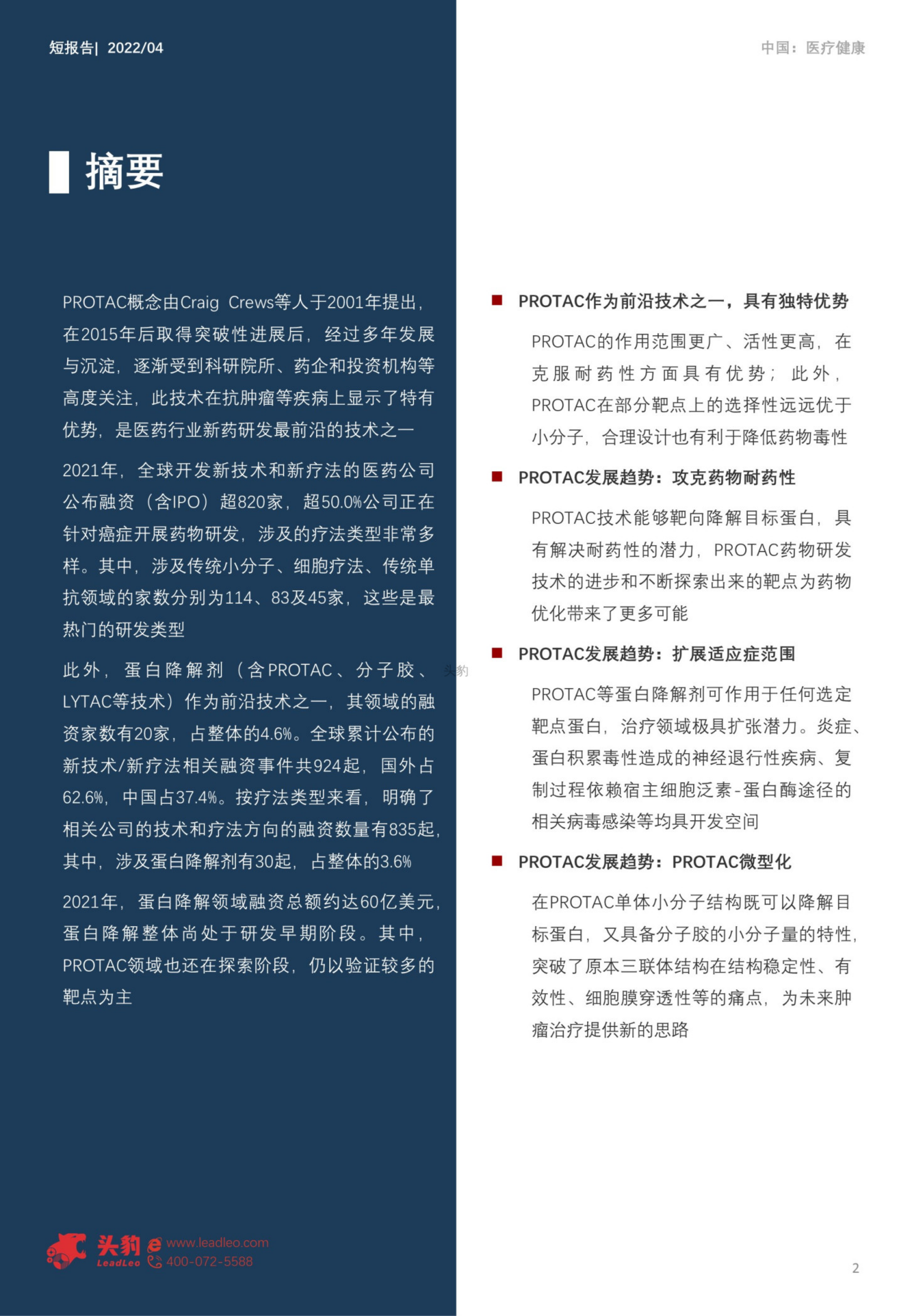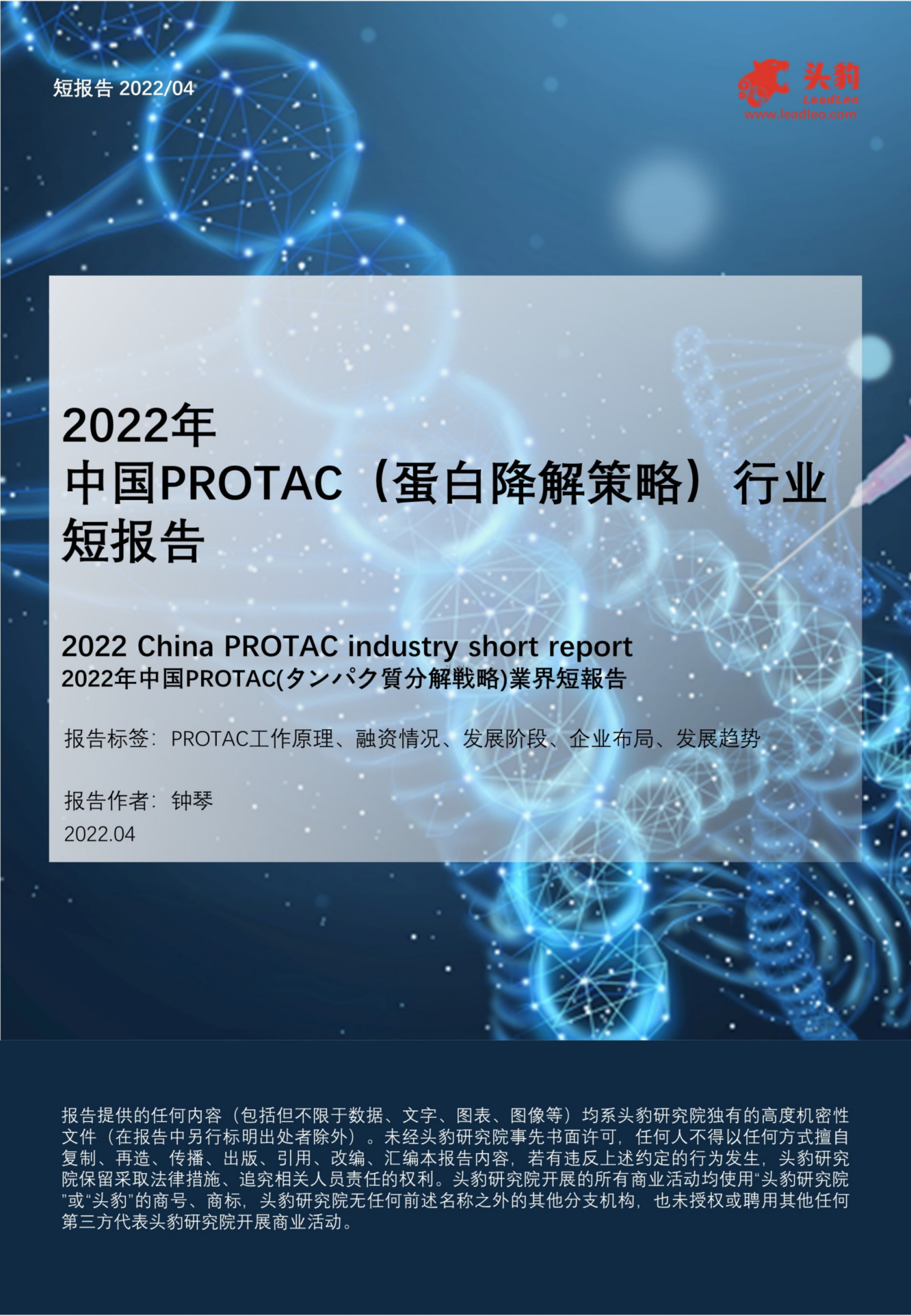 2022年中国PROTAC(蛋白降解策略)行业短报告