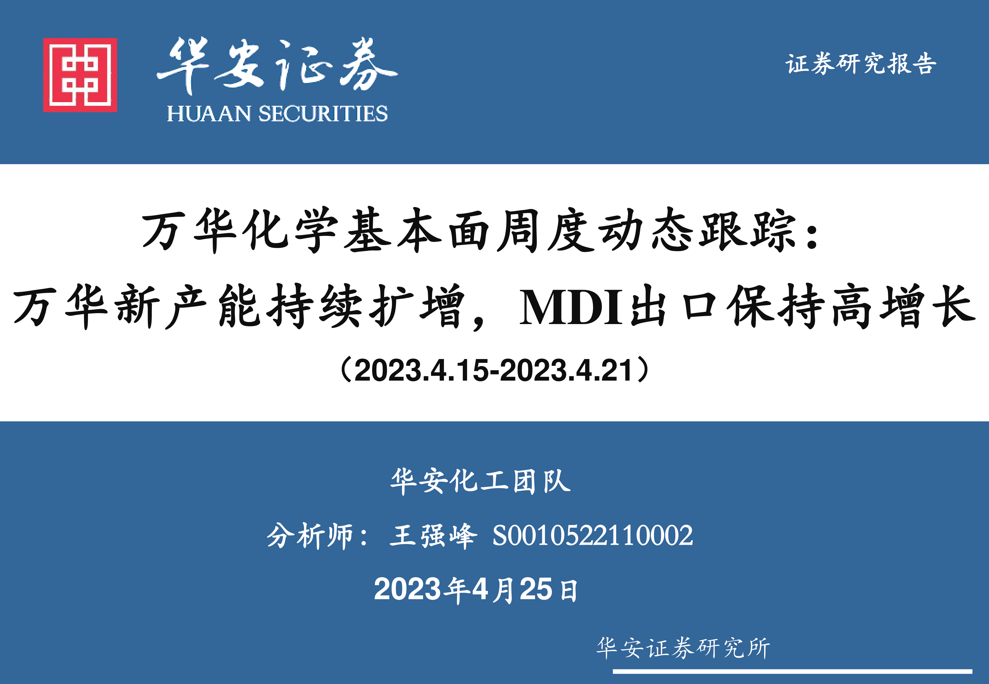 万华化学基本面周度动态跟踪:万华新产能持续扩增,MDI出口保持高增长