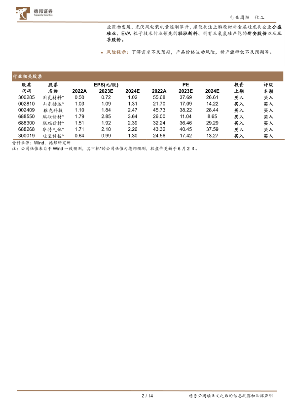 风险提示:下游需求不及预期,产品价格波动风险,新产能释放不及预期等。