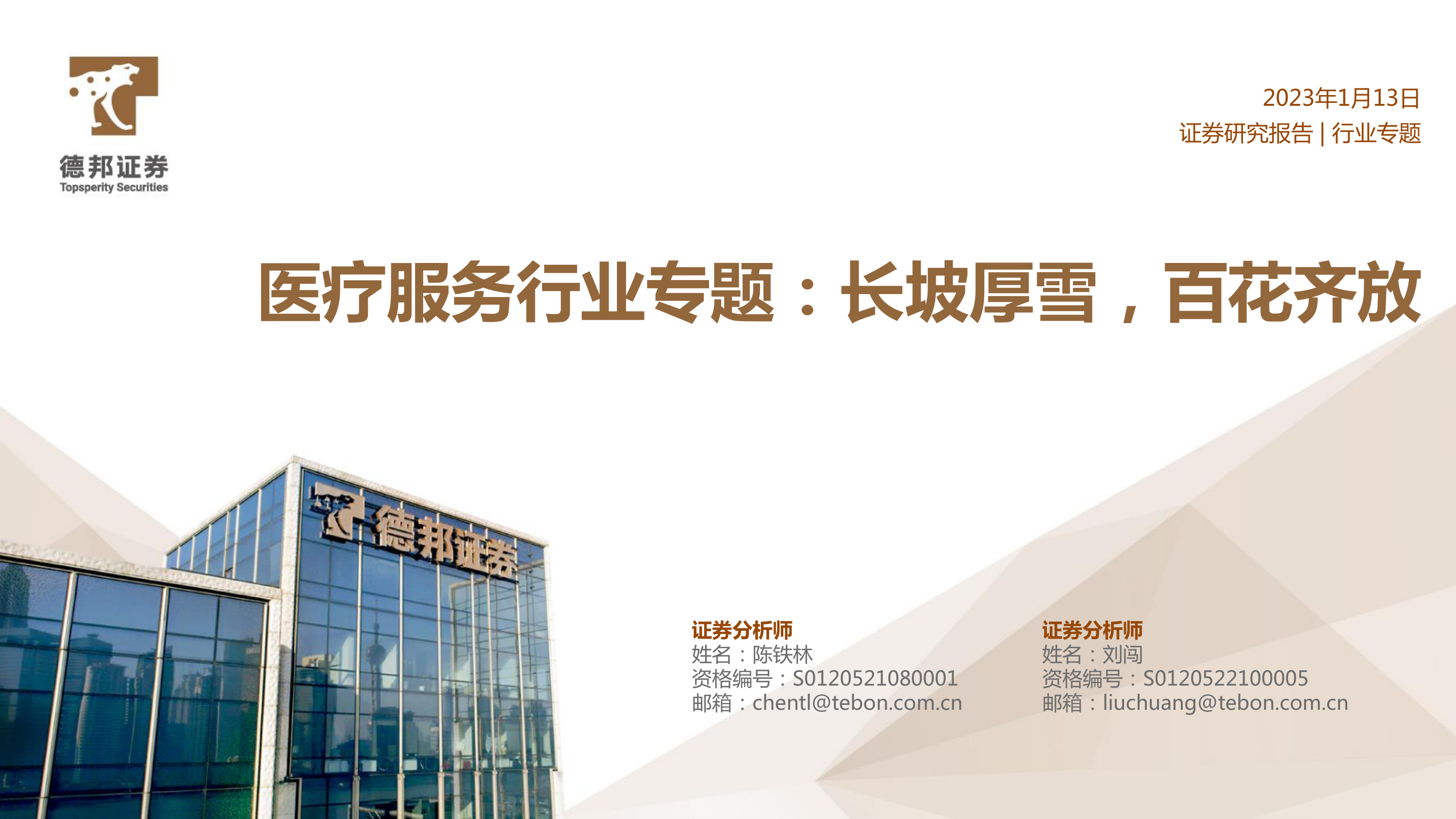 诊疗活动在疫情期间受损严重,预计2023Q2开始恢复反弹:1)疫情三年诊疗活动基本无增长:全国医院端门急诊人次20年同比下滑13.9%,21年相较于19年仅+0.8%,部分科室仍未恢复到19年水平,考虑到2022年疫情多地散发,仍有较大影响,即疫情三年诊疗活动延缓,基本无增长;2)医疗服务相关标的受损严重:2022Q1-3相关标的利润端增速分别为,普瑞眼科-20.6%(疫情前19年为56.6%)、爱尔眼科+17.6%(疫情前19年为36.7%)、华厦眼科+18.1%(疫情前19年为32.6%)、何氏眼科-26.9%(疫情前19年为43.7%)、通策医疗-16.9%(疫情前19年为39.4%)、锦欣生殖+22.2%(疫情前19年为145.9%),预计23Q2随着诊疗开始逐步恢复,相关标的将迎来恢复性增长。